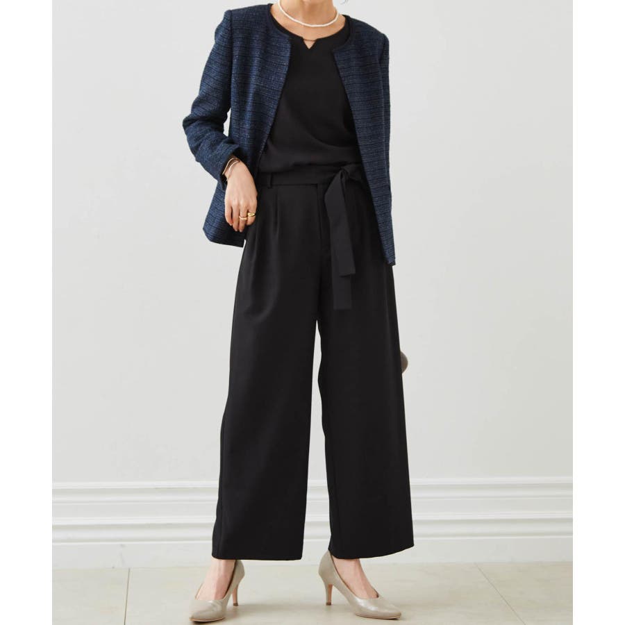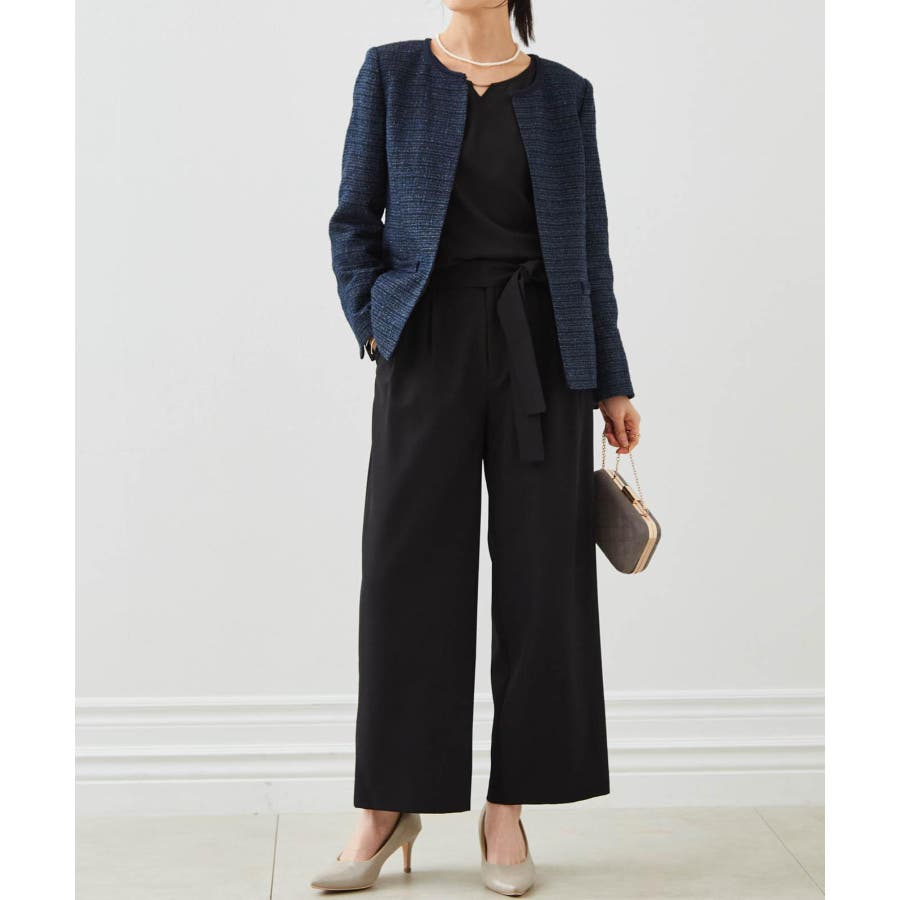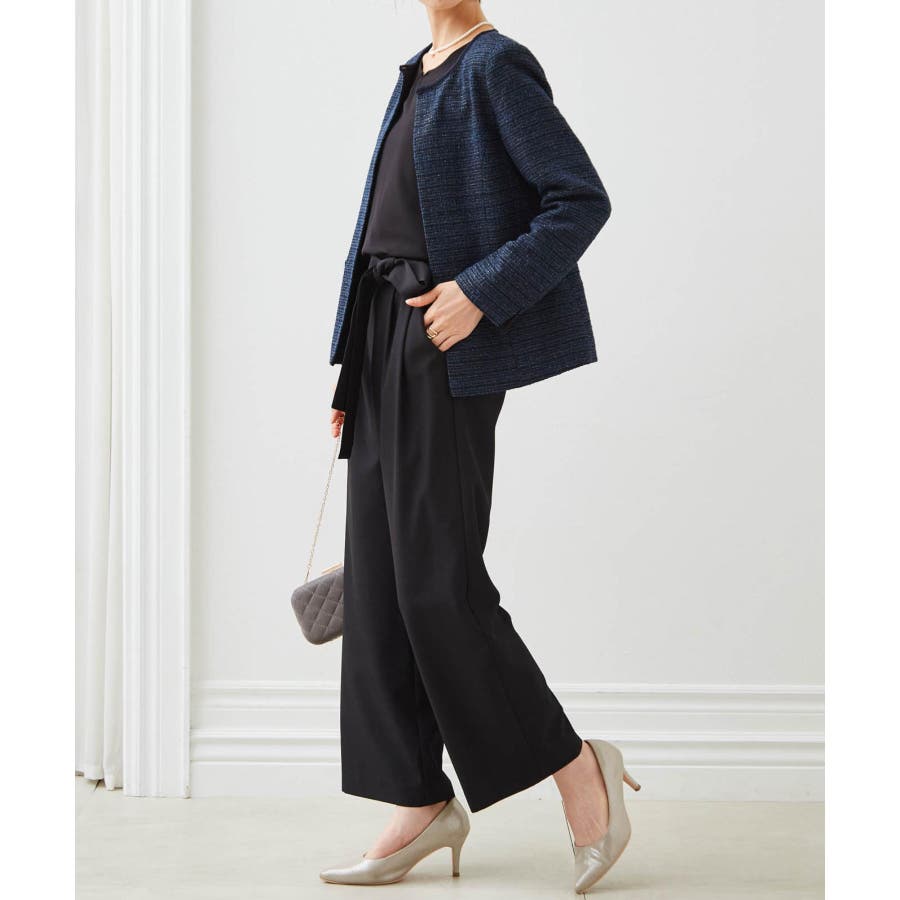 ネイビー系4:ネイビー系ジャケット+ブラックブラウス+ワイドパンツ+コサージュ