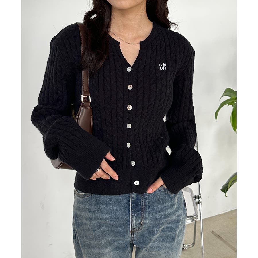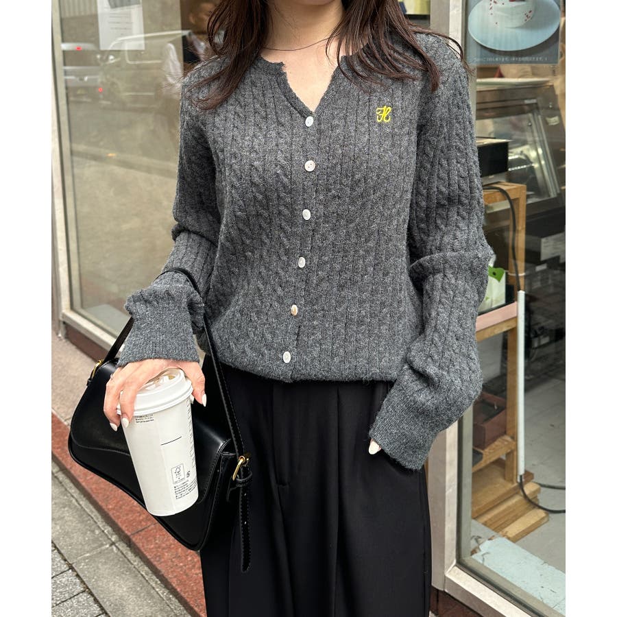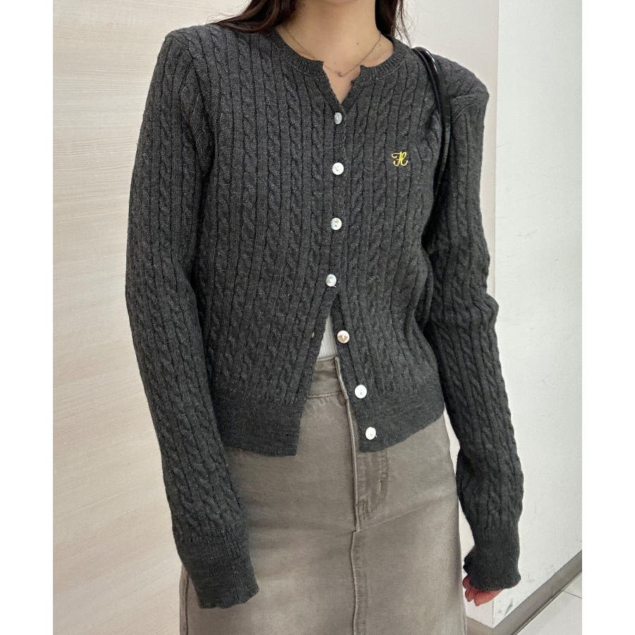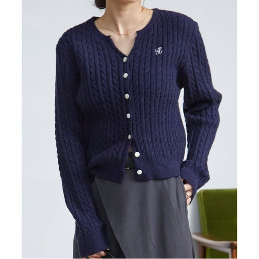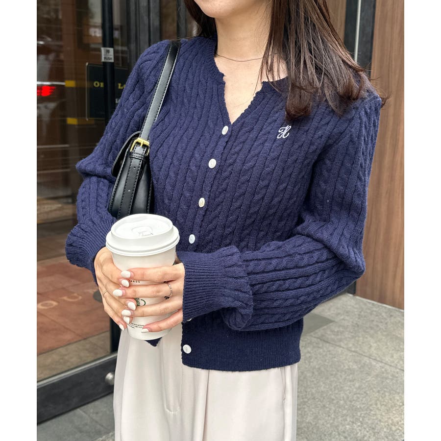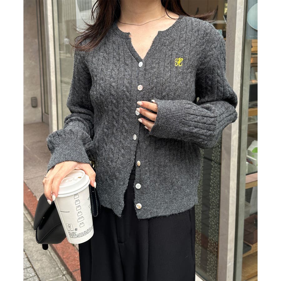 <solleim>キーネックケーブルニットカーディガン