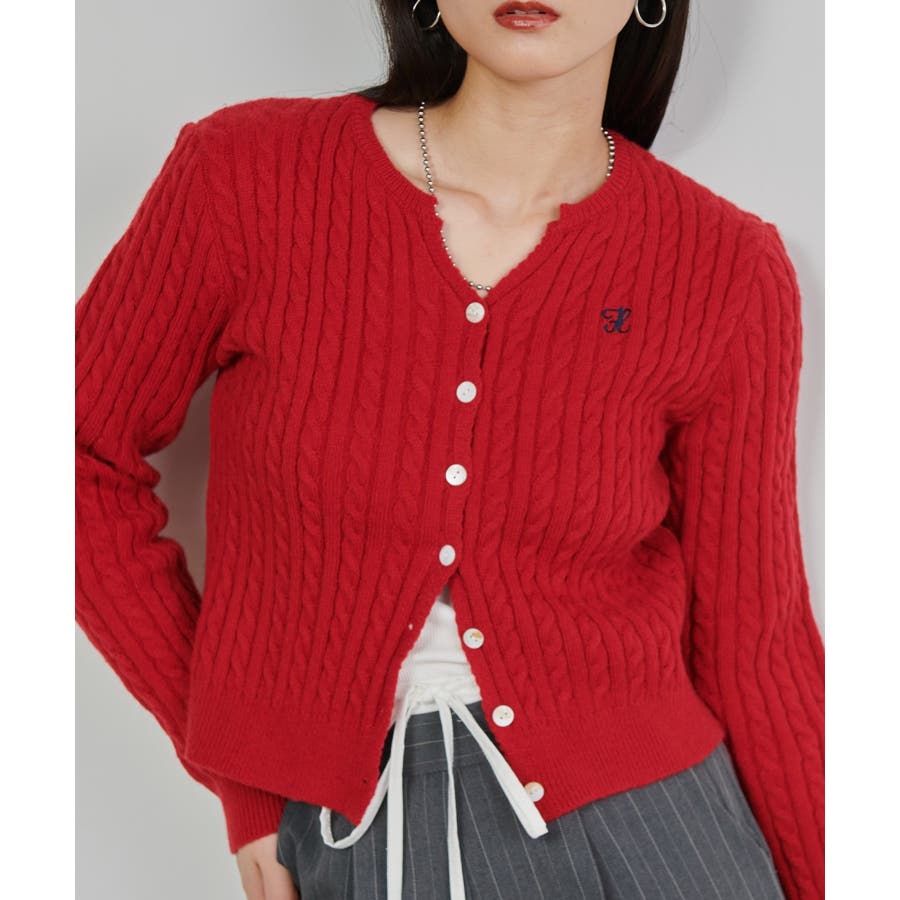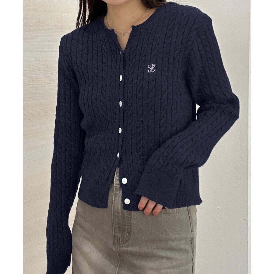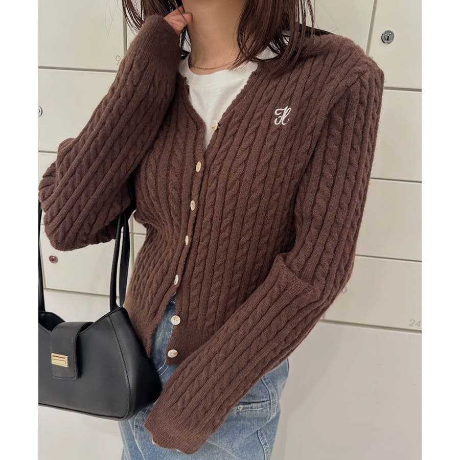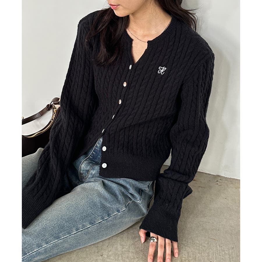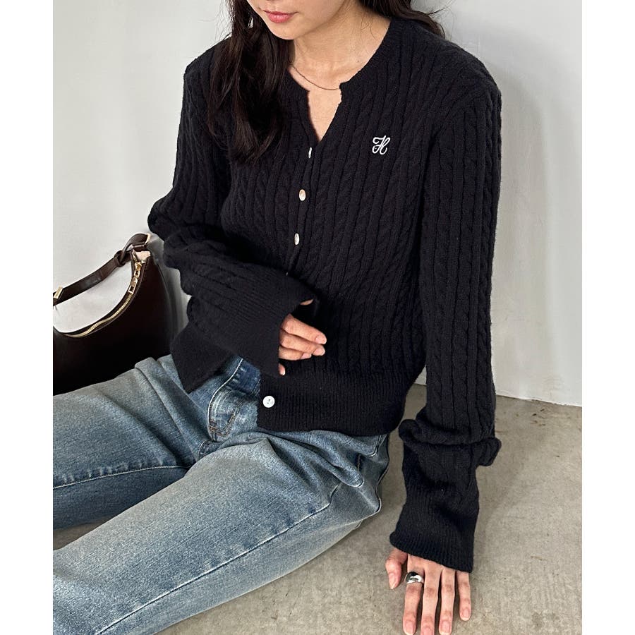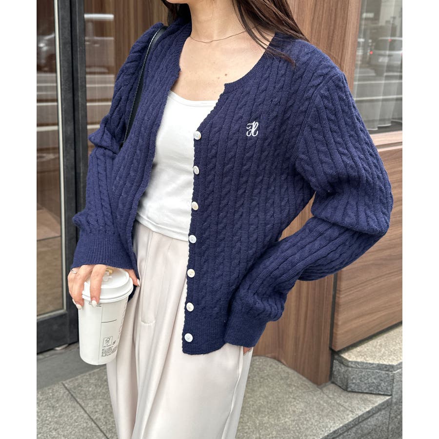 <solleim>キーネックケーブルニットカーディガン