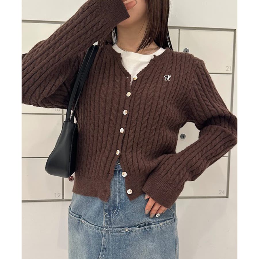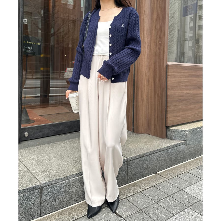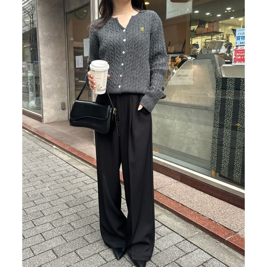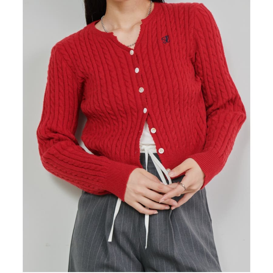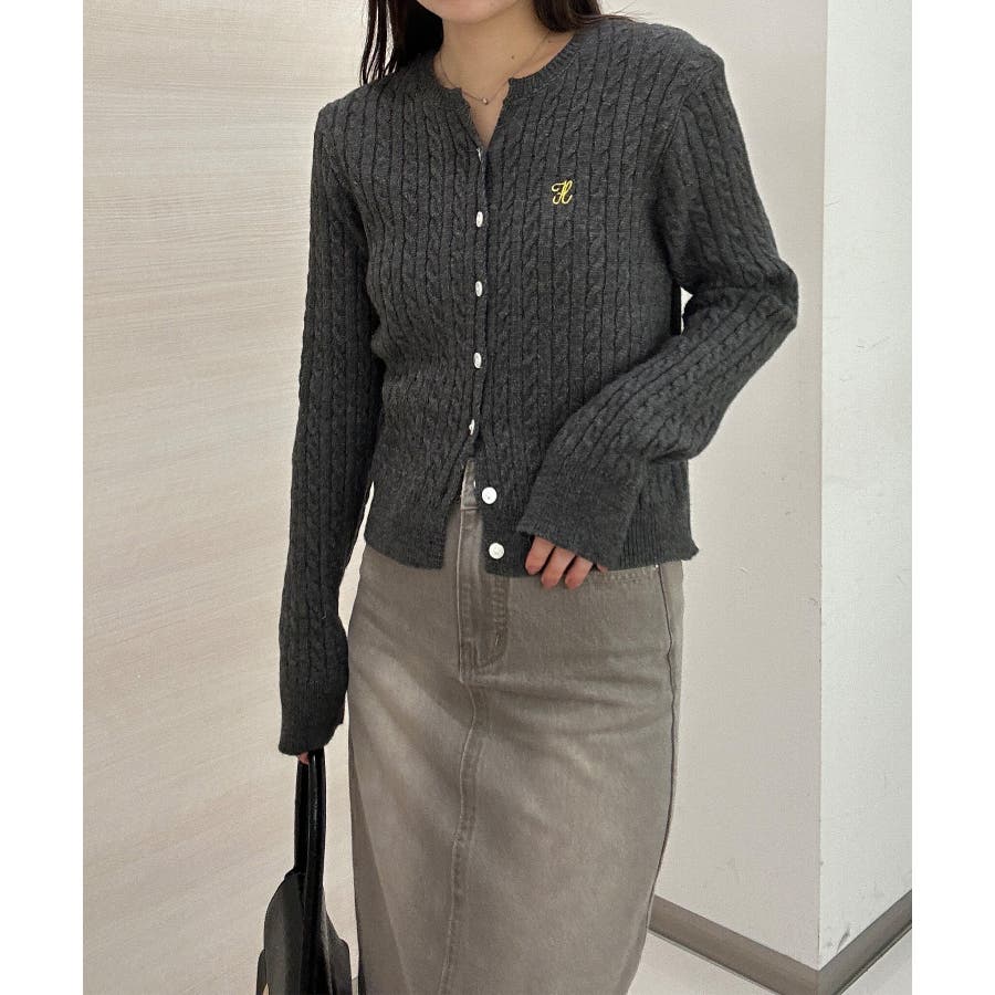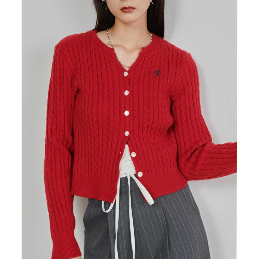 <solleim>キーネックケーブルニットカーディガン