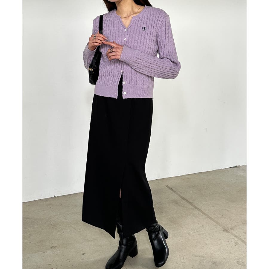 ケーブル編で伸縮性のある程よいフィット感ときちんと見えするハイゲージニット。