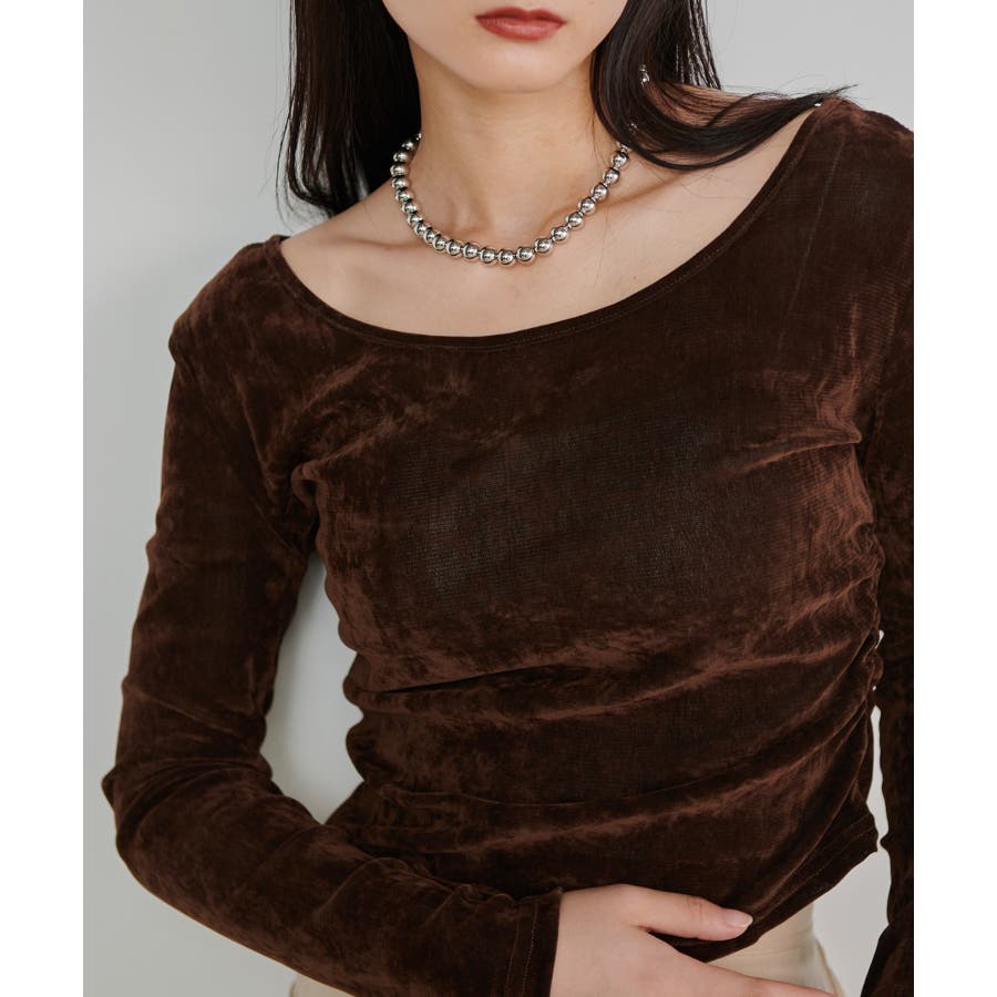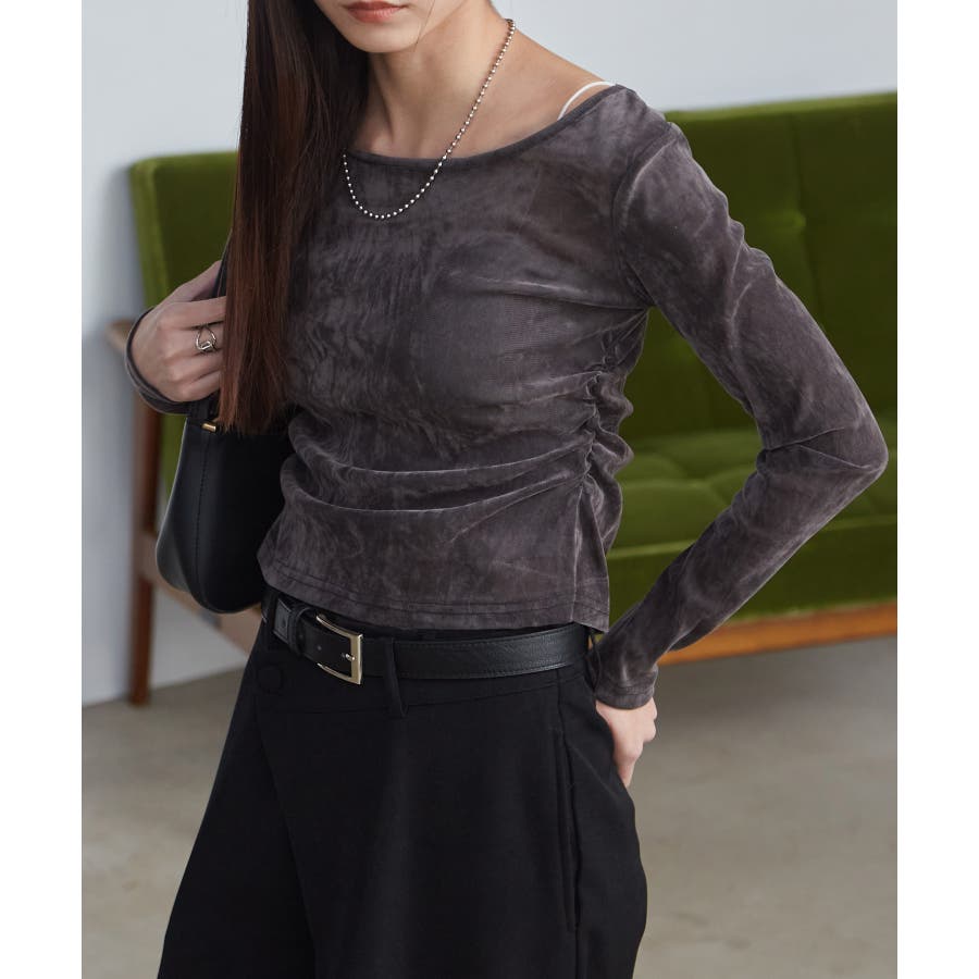 フロッキー加工のような見え感がポイントのベロアトップス。