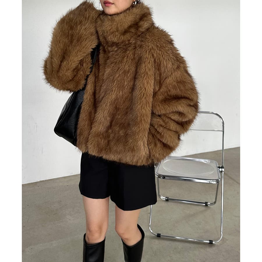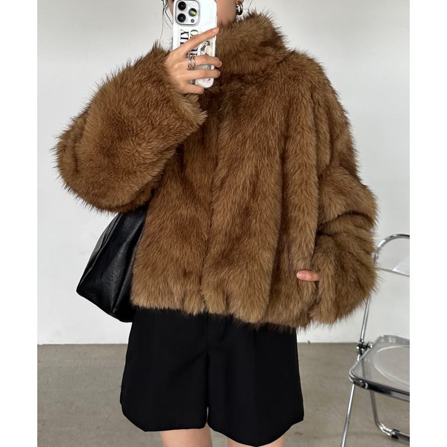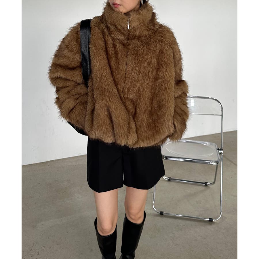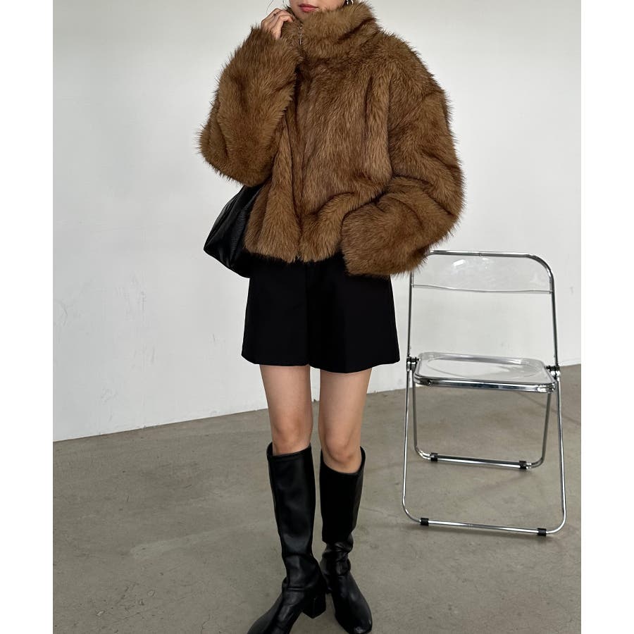 ガーリーすぎないファーの素材感で色々なスタイリングに合う、軽やかな着心地の優秀アウター。