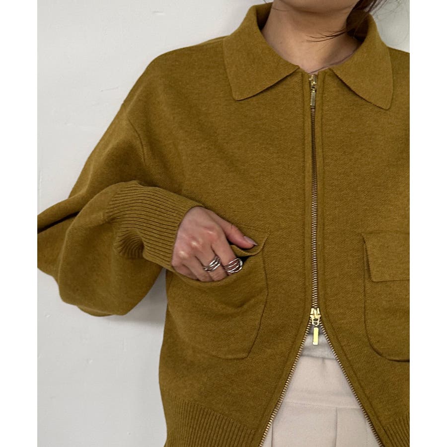 ダブルジップ襟付きニットブルゾン