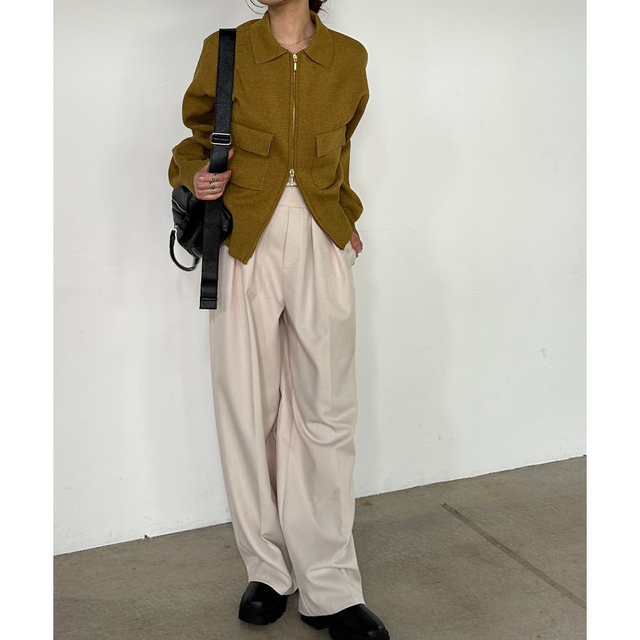ポロ襟・ダブルジップ・ポケットなど、デザイン性のあるトップスです。