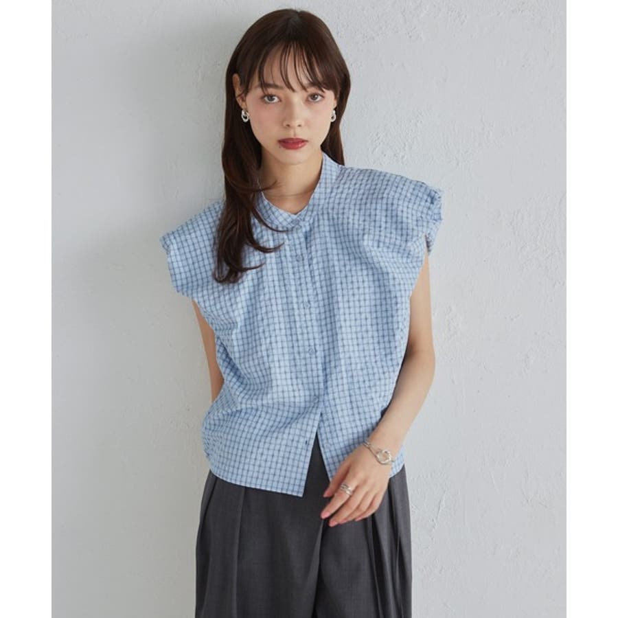 パフショルダーコンパクトチェックシャツ