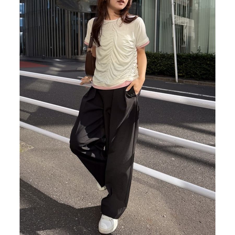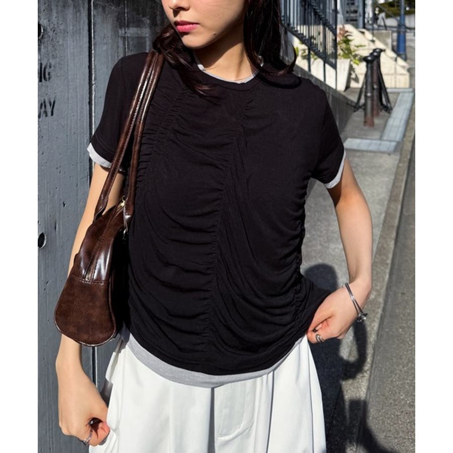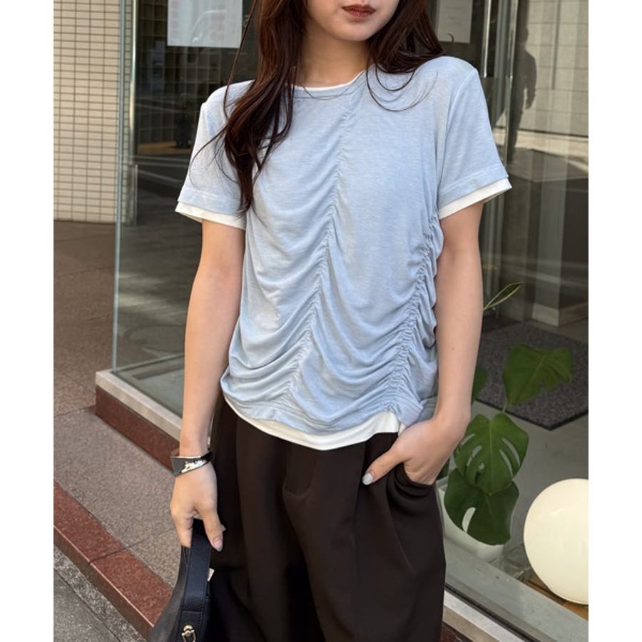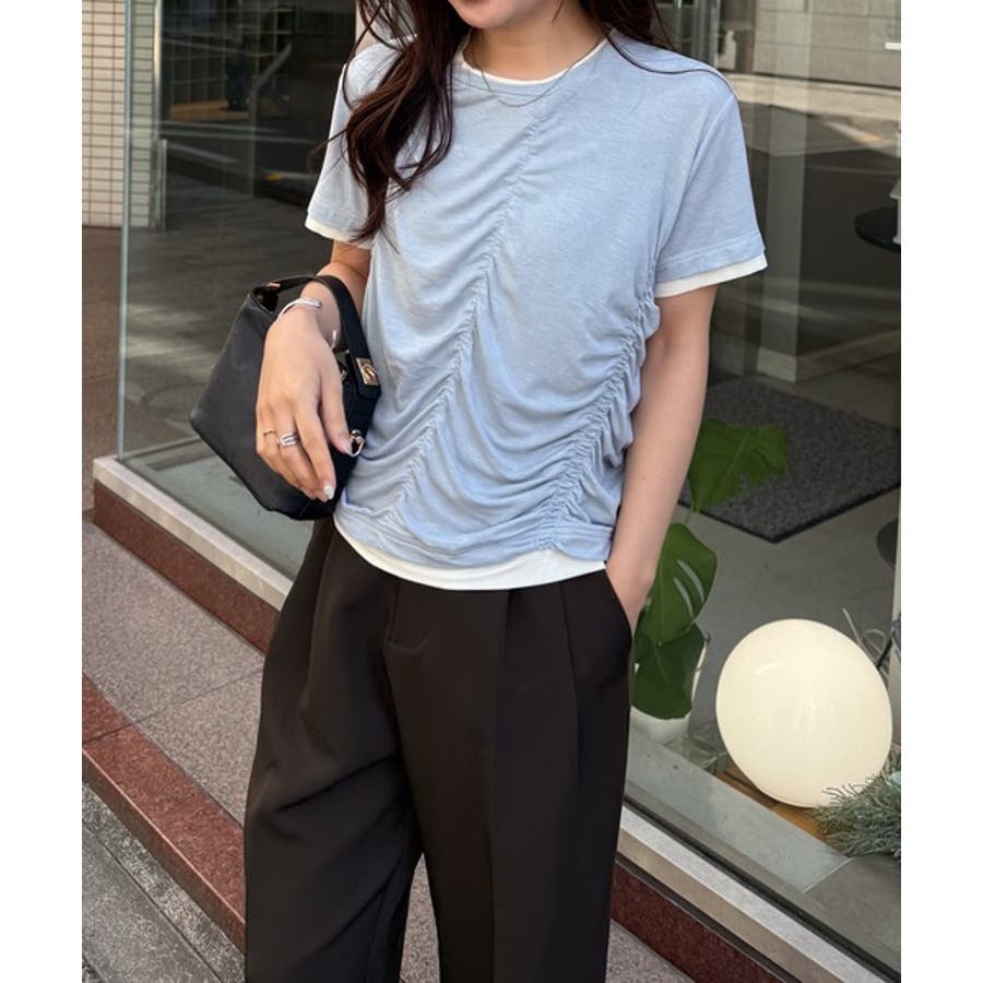 シャーリングレイヤードTシャツ