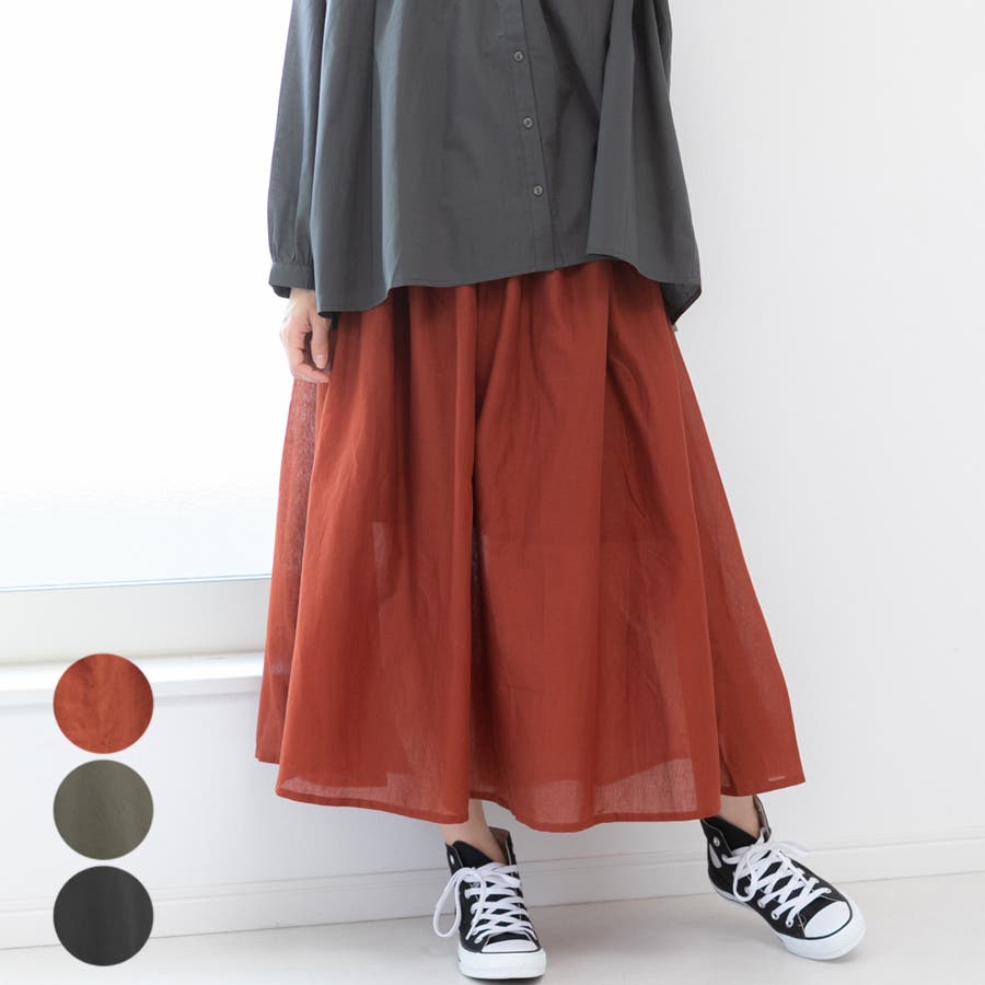 夏の大人カジュアルにぴったりのフレアロングスカート。薄手で密度の粗いボイル生地は肌にくっつかず着心地も抜群です。気になる脚周りをキレイにカバーしながら、深みのあるカラーはコーデをぐっと引き締めます。色違いで揃えたくなる優秀スカートです。