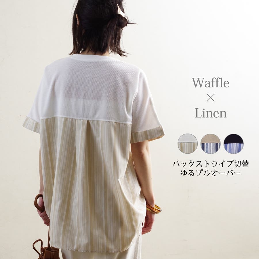 【バックストライプ切替ワッフルプルオーバー】