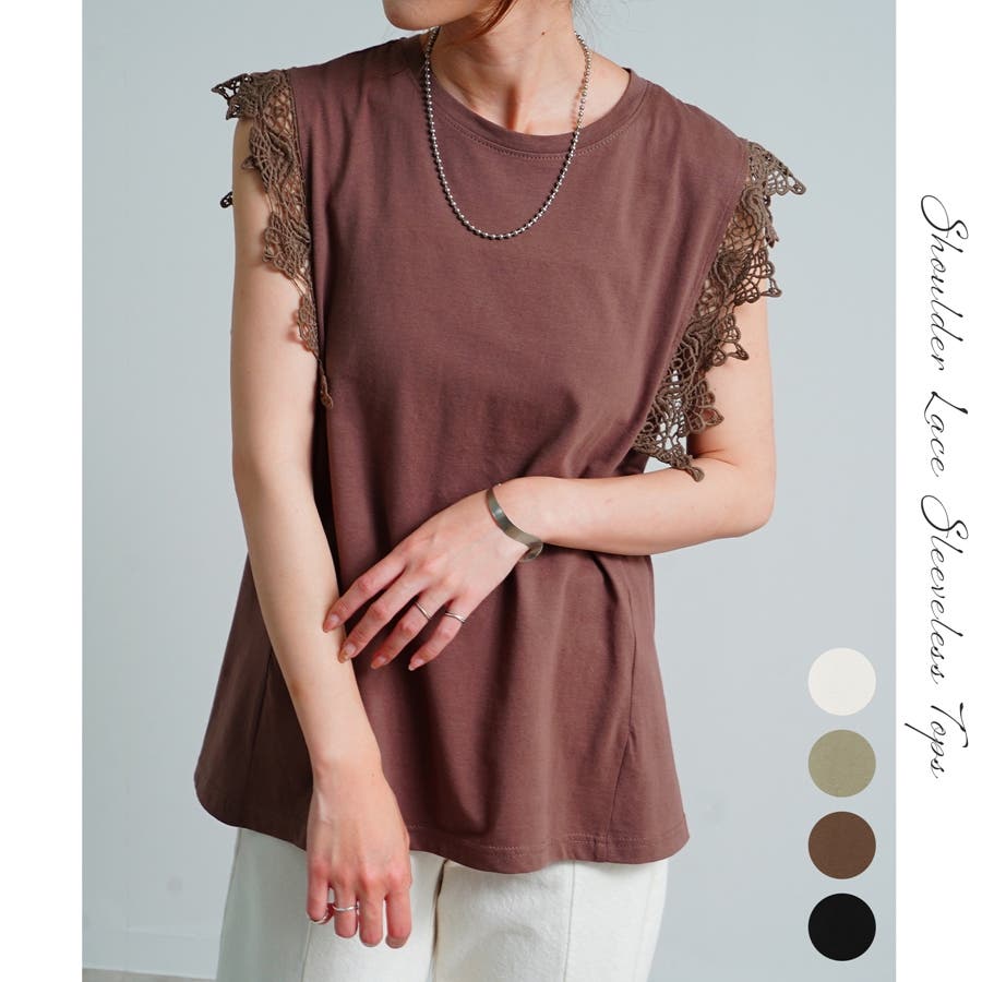【肩レースノースリーブトップス】