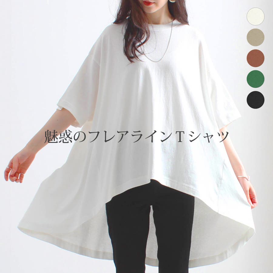 フレアシルエットがポイントのTシャツは、スキニーパンツやナロースカートなどと組み合わせたメリハリシルエットコーデがおすすめ。1枚でもおしゃれ見れしてくれる優秀アイテムです。