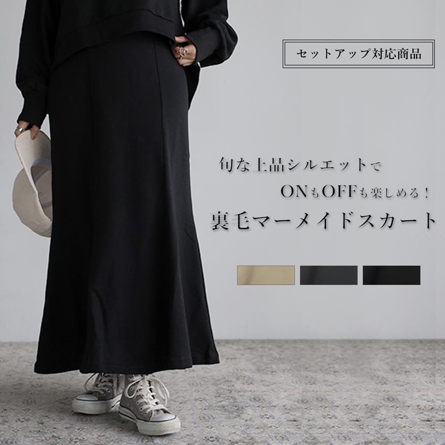 裏毛マーメイドスカート レディース 長袖 秋冬 春 20代 30代 40代