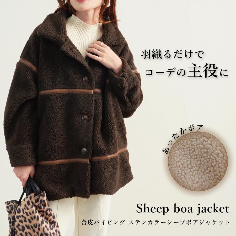 暖かく肉厚なシープボアをベースに、フェイクレザーでパイピングしました。