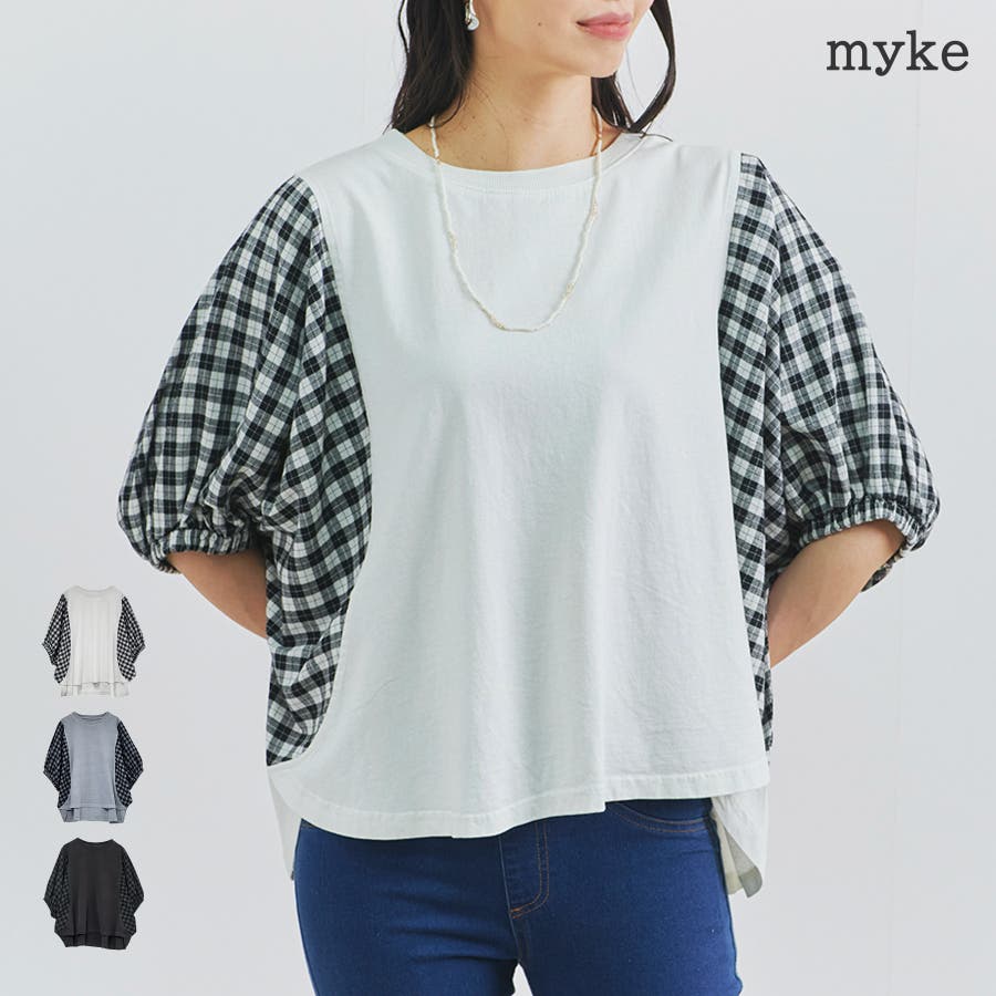 袖をチェック柄で切り替えたカジュアルなデザイントップス。