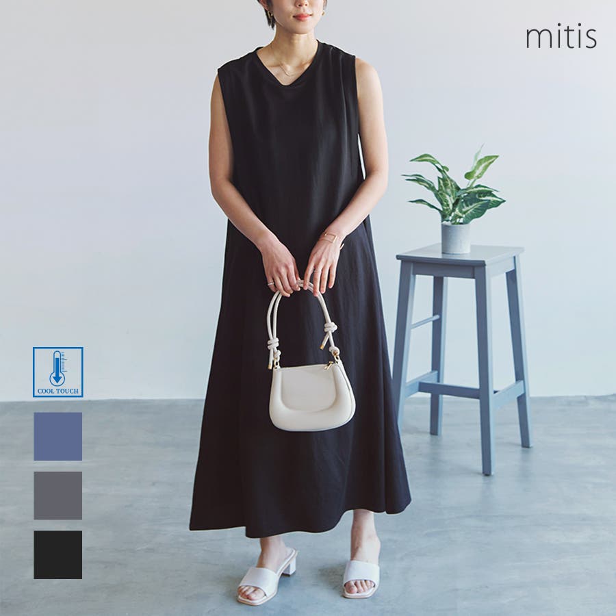 シンプルなノースリーブシルエットに肩のタックデザインがポイントのワンピース。