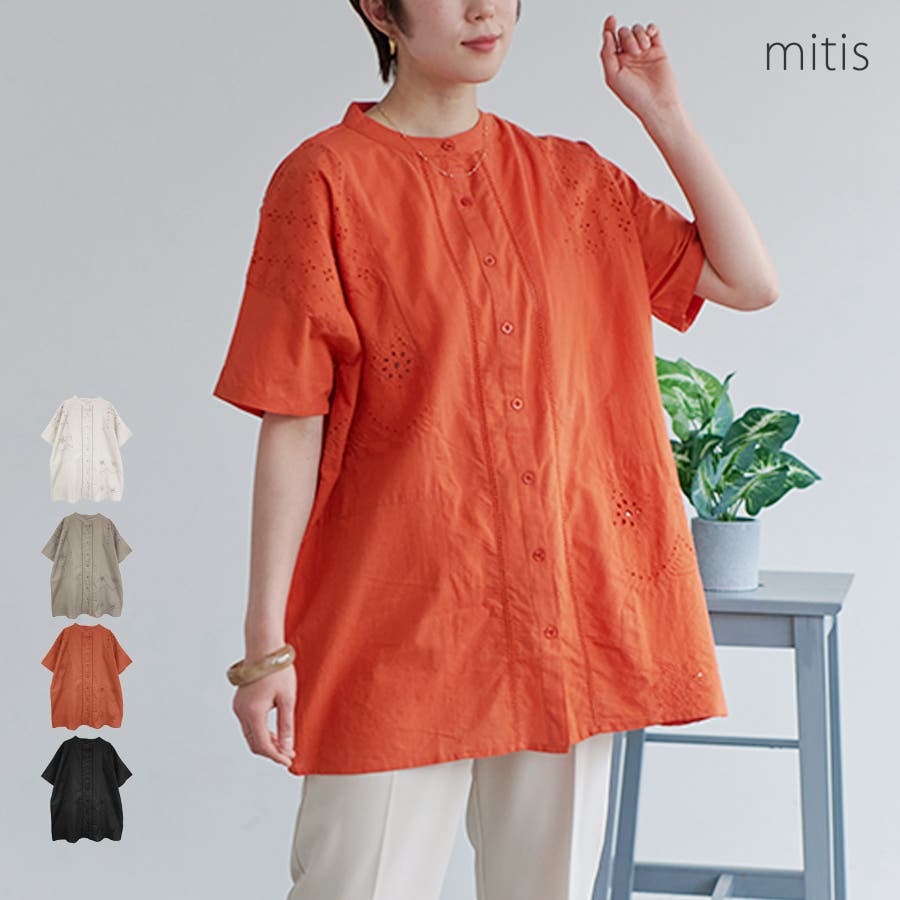 【綿キャンブリック 刺繍切替えデザインシャツ】