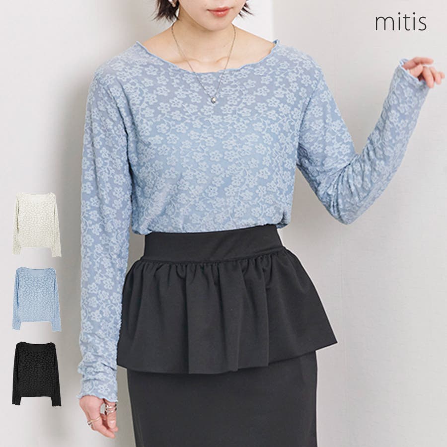 【Tシャツ 長袖 レディース 花柄 シアー クルーネック ロンT 春 20代 30代 40代 50代】