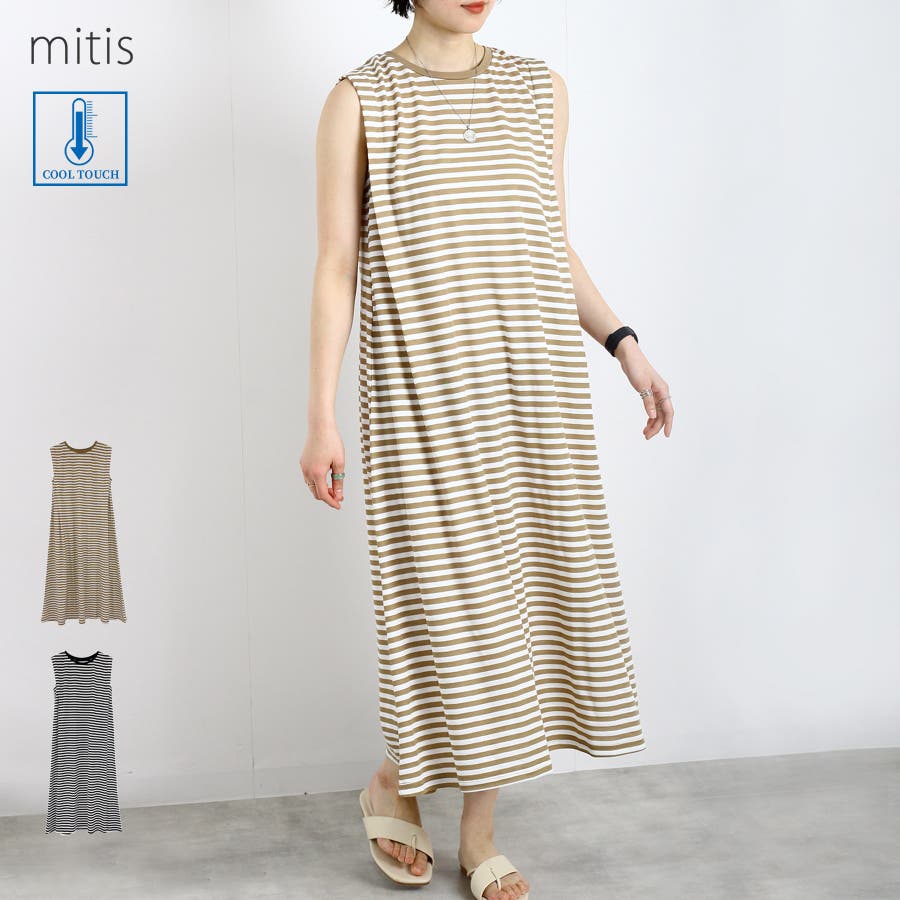 【ワンピース レディース ノースリーブ 春 夏 接触冷感 カノコ ボーダー タック バックフレア ワンピース 大人 体型カバー ゆったり 20代 30代 40代 50代】