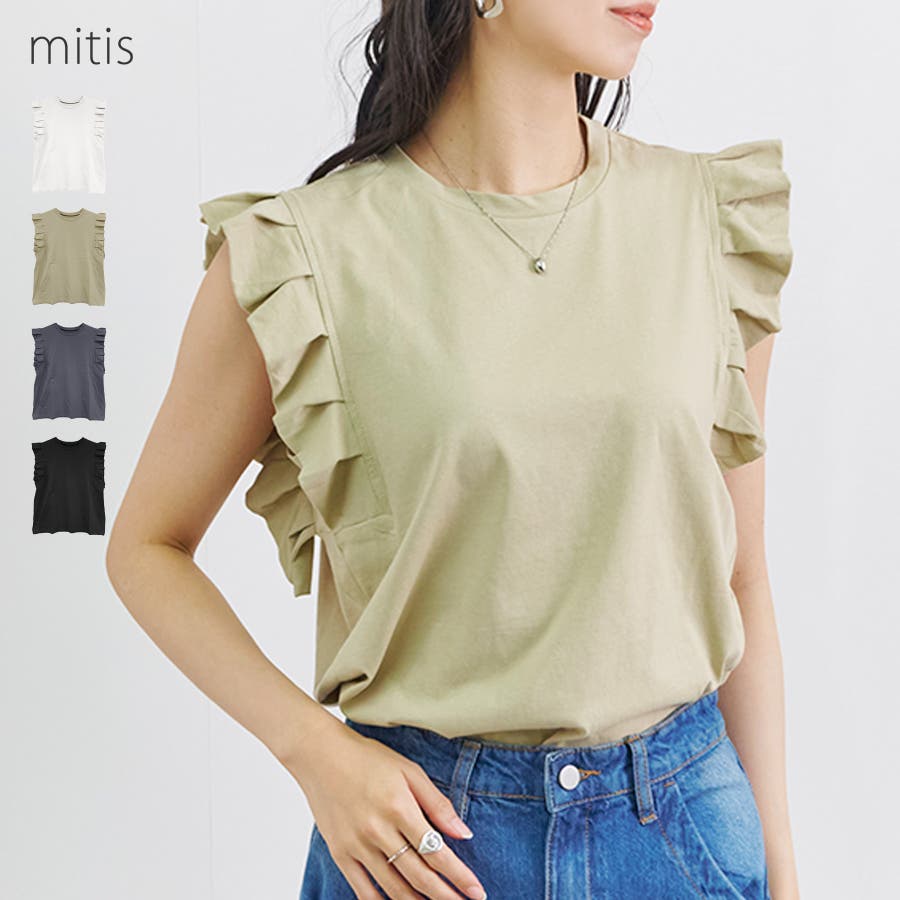 【コットン天竺 プリーツ袖ノースリーブ】
