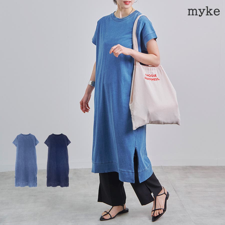 【ワンピース レディース 春 夏 半袖 インディゴ 天竺 サイドスリット 大人 体型カバー ゆったり 20代 30代 40代 50代】