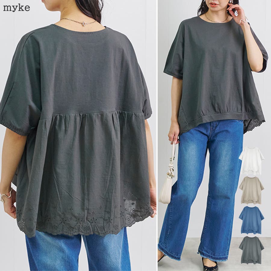 【プルオーバー レディース 半袖 春 夏 スカラップ レース 切替え ドルマン 大人 体型カバー ゆったり 20代 30代 40代 50代】