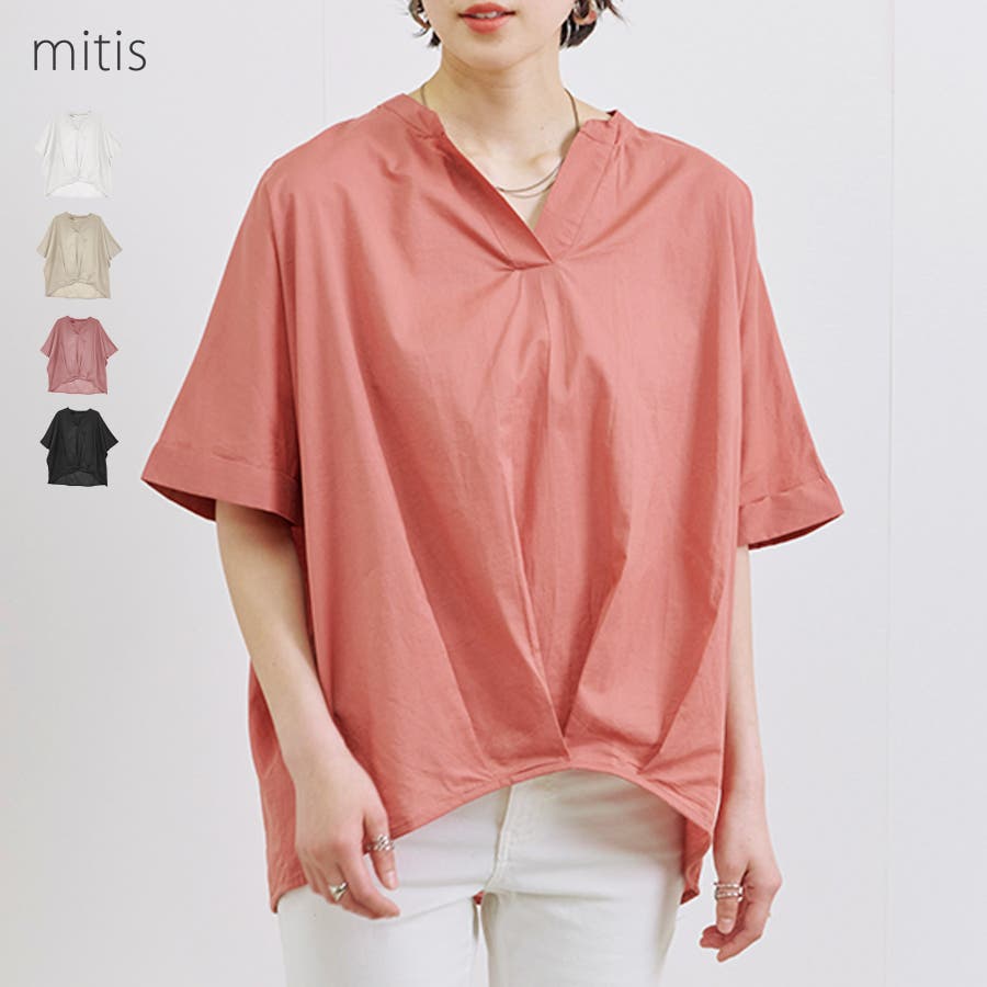 【ブラウス レディース 春 夏 半袖 綿 キャンブリック 裾タック スキッパー 大人 体型カバー ゆったり 20代 30代 40代 50代】