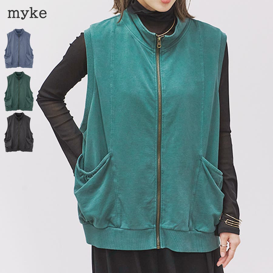 【ピグメント裏毛 スタンドカラージップアップベスト】