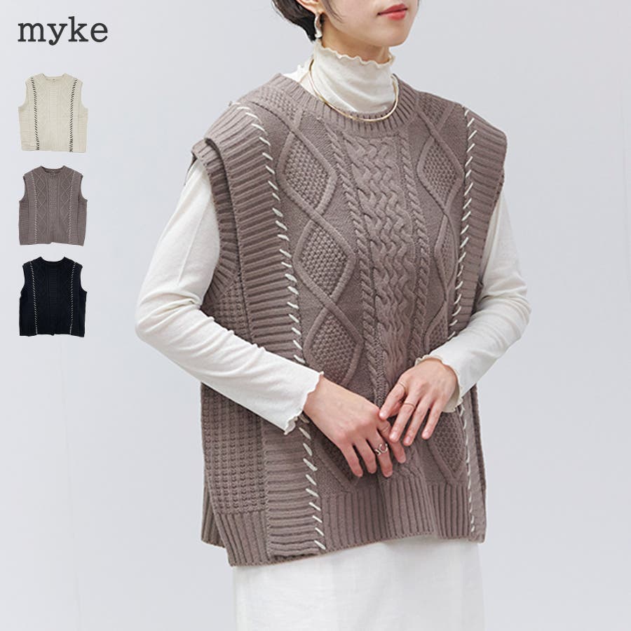 ※ご覧になっているモニターや環境などにより実際の商品と多少色味が異なって見える場合がございます。予めご了承をお願いいたします。 【ベスト レディース ニット 秋 冬 配色 ブランケット ステッチ ケーブル 大人 体型カバー ゆったり 20代 30代 40代 50代】 メーカー希望小売価格はメーカーサイトに基づいて掲載しています