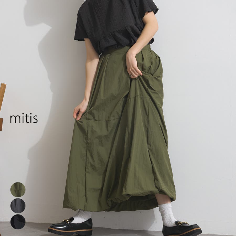バルーンスカート / ロングスカート / ナイロンワッシャー / ウエストゴム / 切替えデザイン / ギャザー / 立体シルエット / オールシーズン / ナチュラル / リラクシー / 大人カジュアル / モードカジュアル / 体型カバー / デイリー