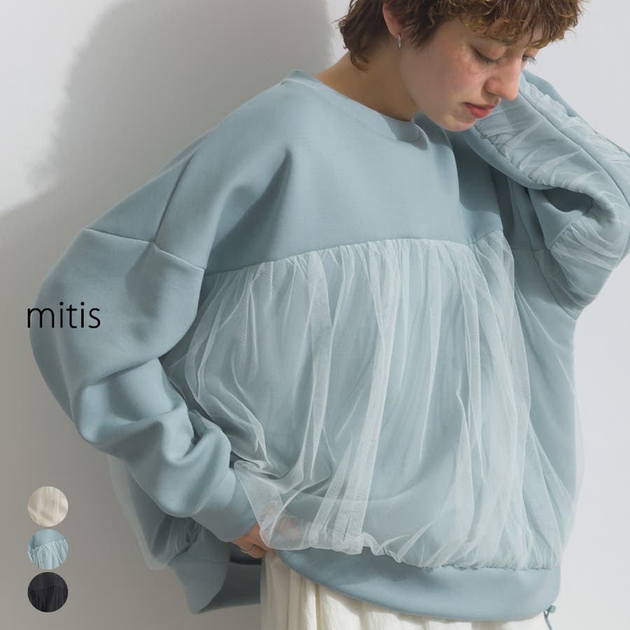 ダンボール / チュールトップス / 異素材 / ワイドシルエット / クルーネック / ドロスト仕様 / 春夏トップス / フェミニン / ナチュラル / リラクシー / 大人カジュアル / デイリー / レイヤード風 / プルオーバー / トレーナー
