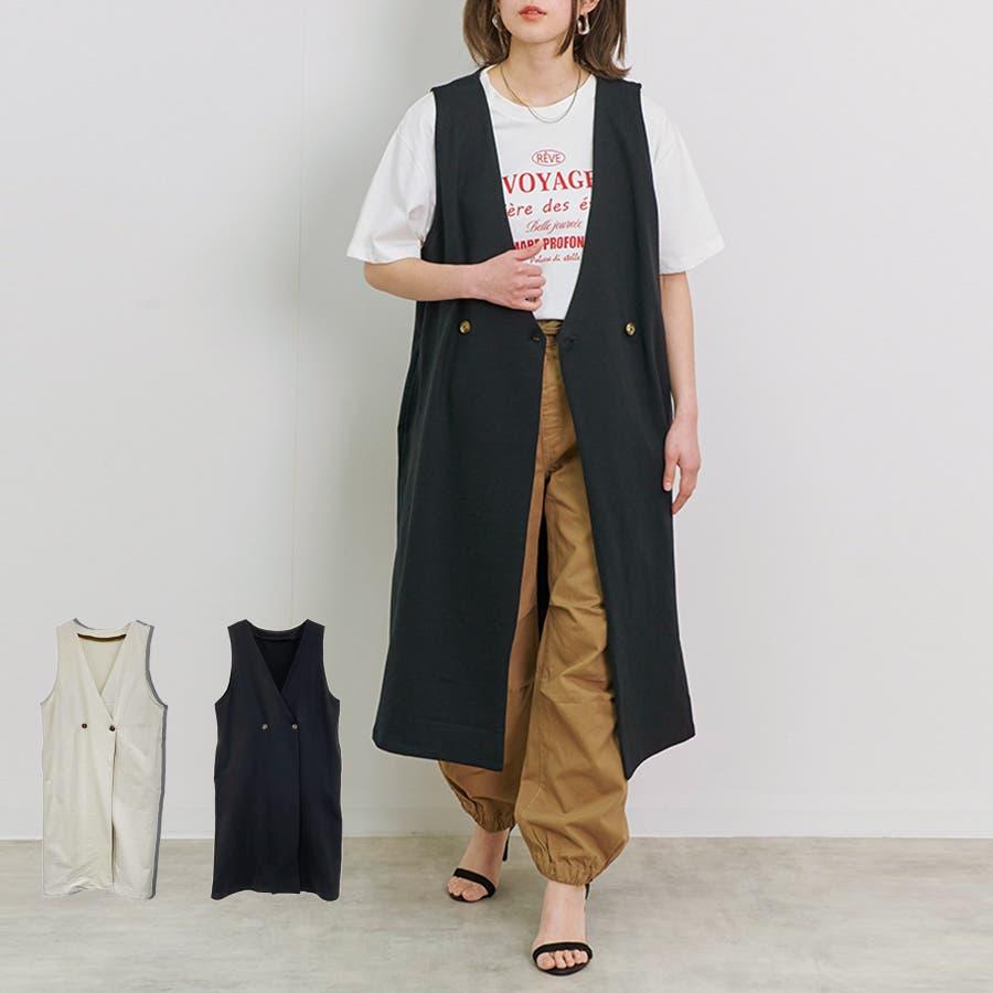 深めのVネックが抜け感たっぷりなロングベスト。