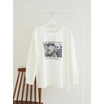フラワーフォト×ロゴ刺繍ロングTシャツ