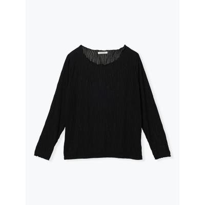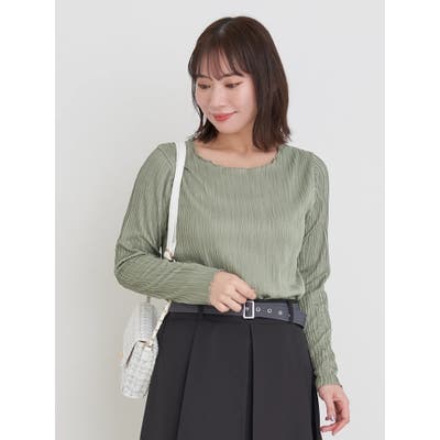 ・シンプルになりがちな無地トップスも表面感のある素材使いで1枚で着てもコーデのポイントに。