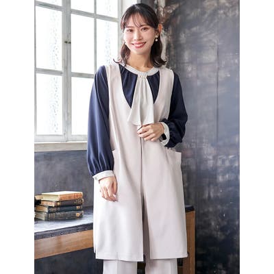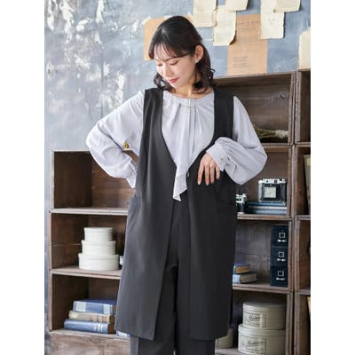 リボン結びをしたボウタイブラウスの上に重ねるとこなれた印象に仕上がるのでおすすめです。