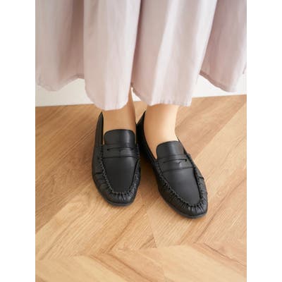 くしゅっとしたギャザーが足元に表情感をプラスするローファー。