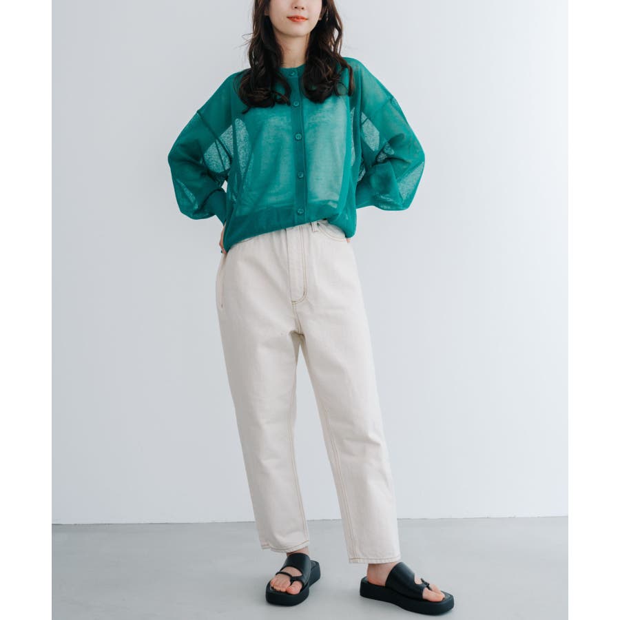 程よい透け感でトレンド感ある洒落っ気にアップデートする1枚。