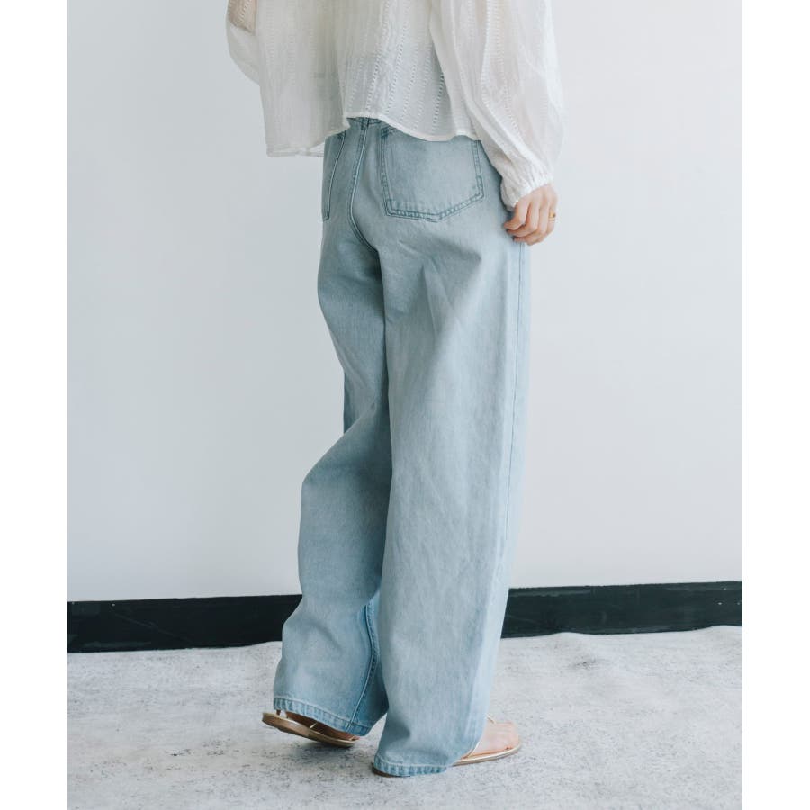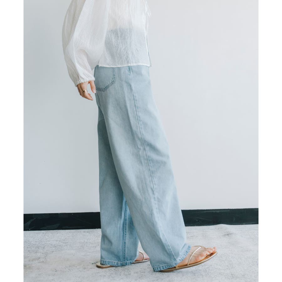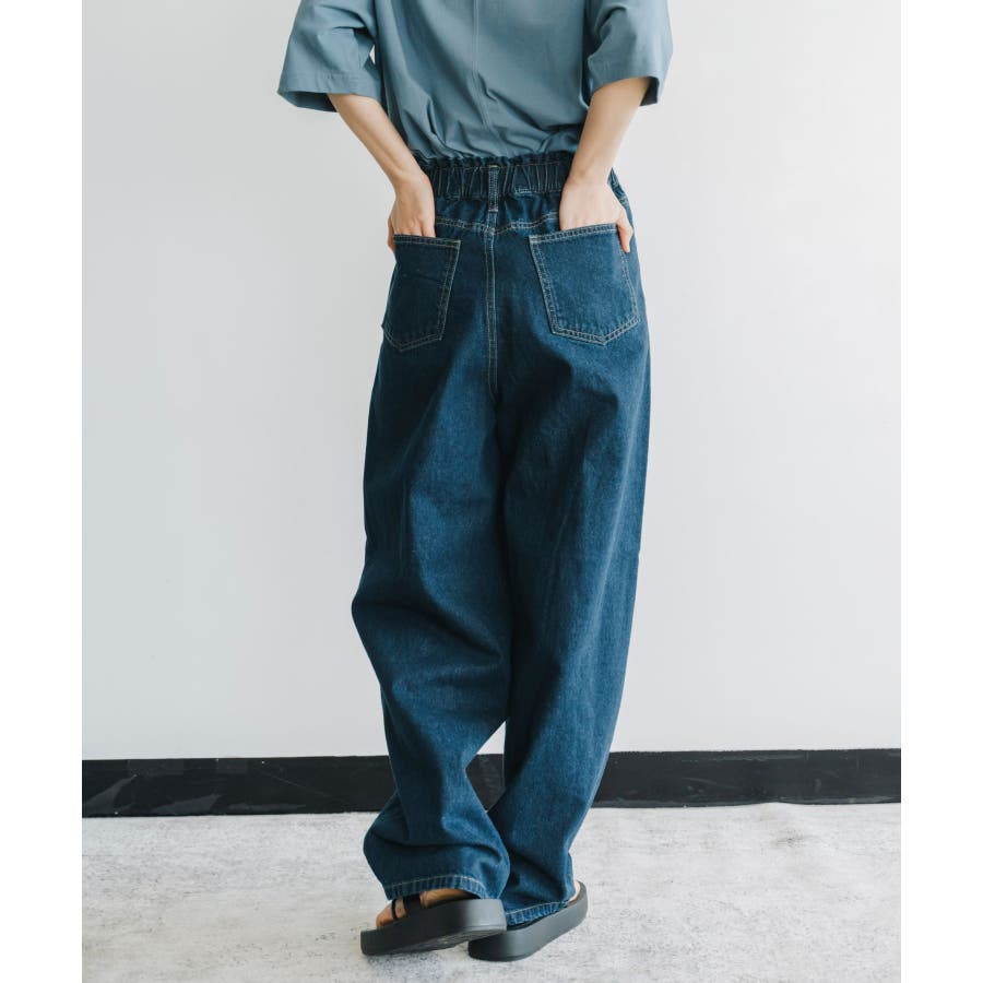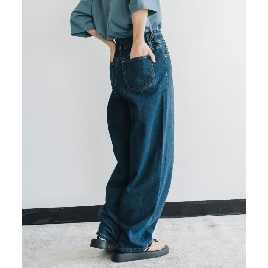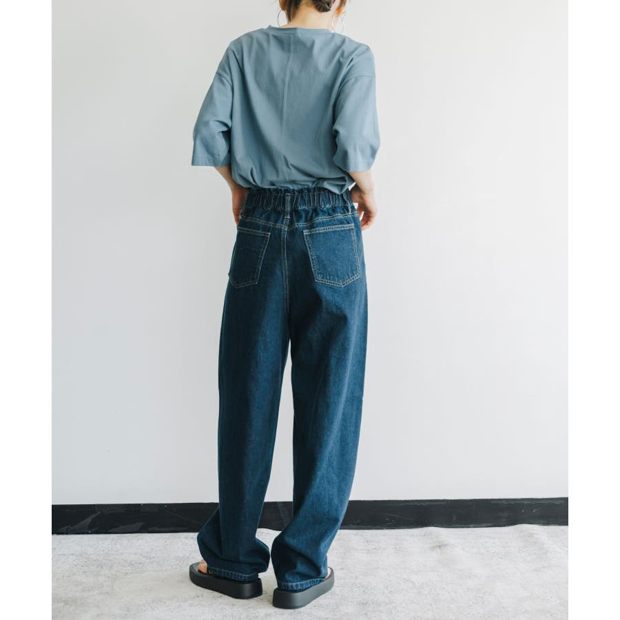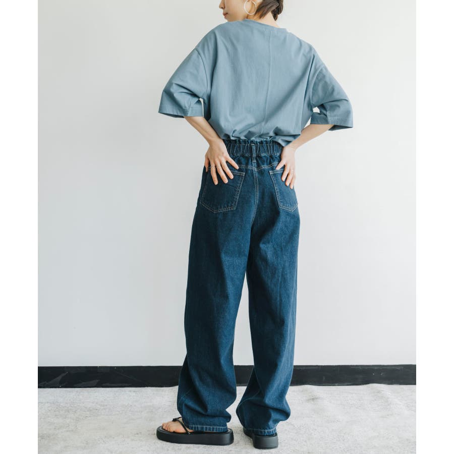 程よいハイウエストデザインで後間和英はスッキリと仕上げ、ワイドなシルエットながらも美脚見えします。