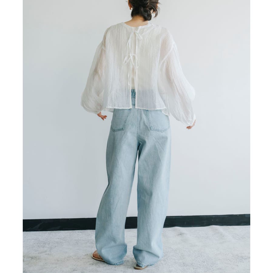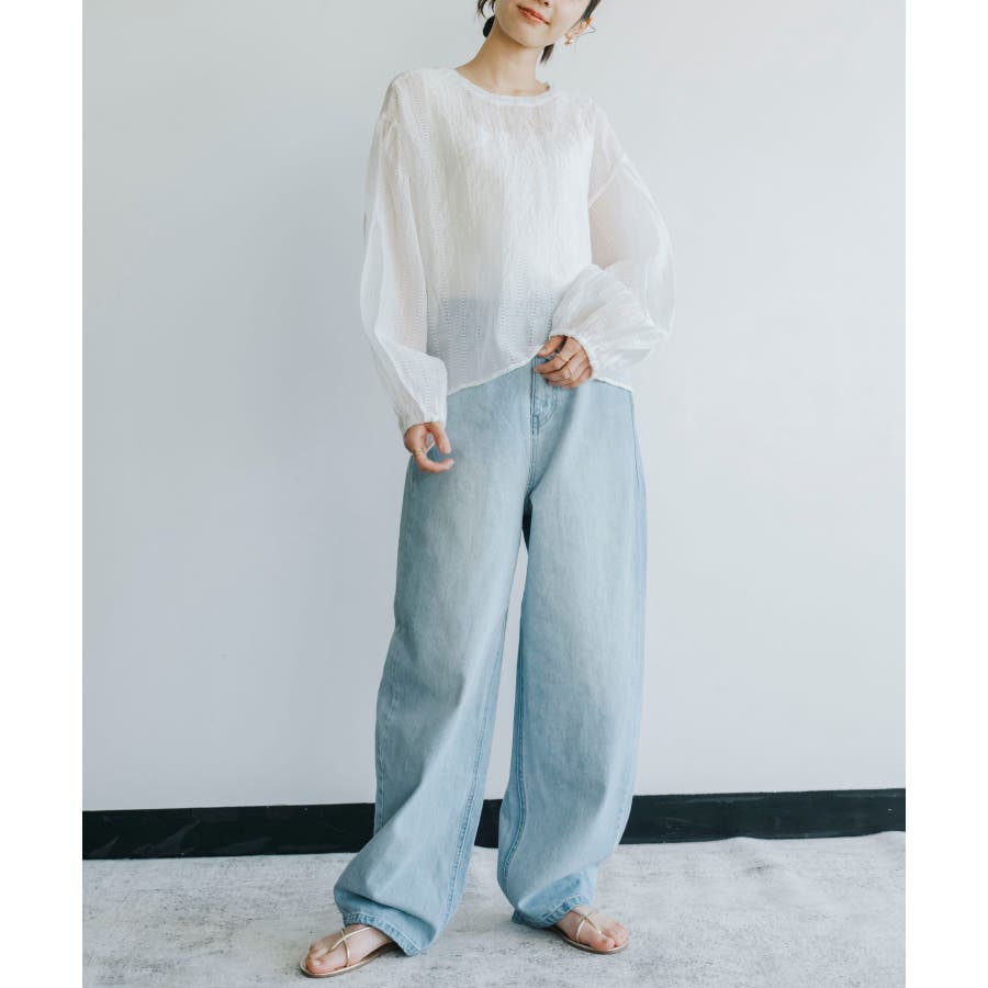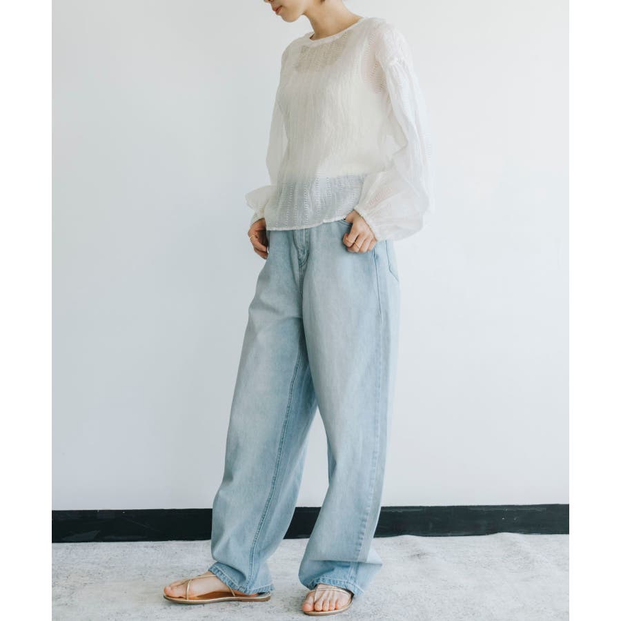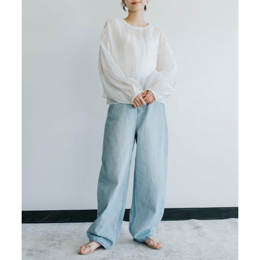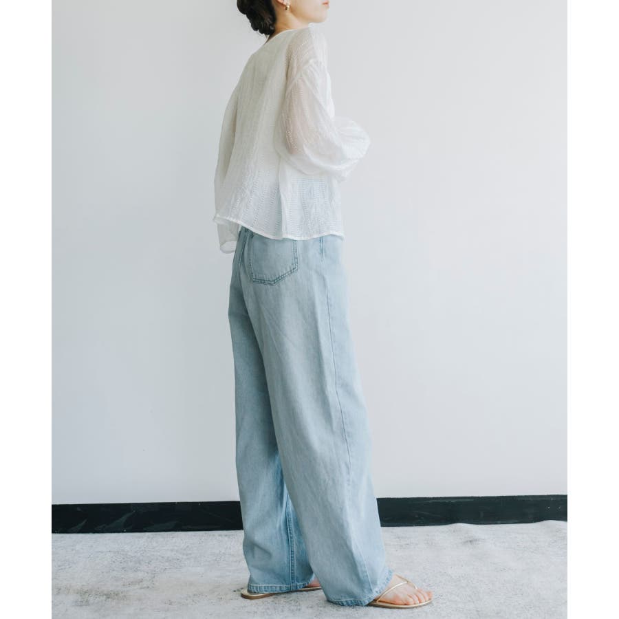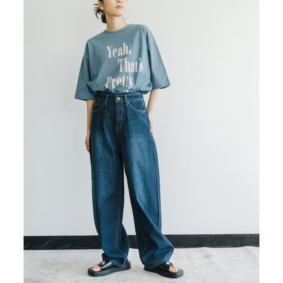 程よいハイウエストデザインで後間和英はスッキリと仕上げ、ワイドなシルエットながらも美脚見えします。