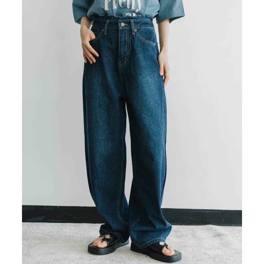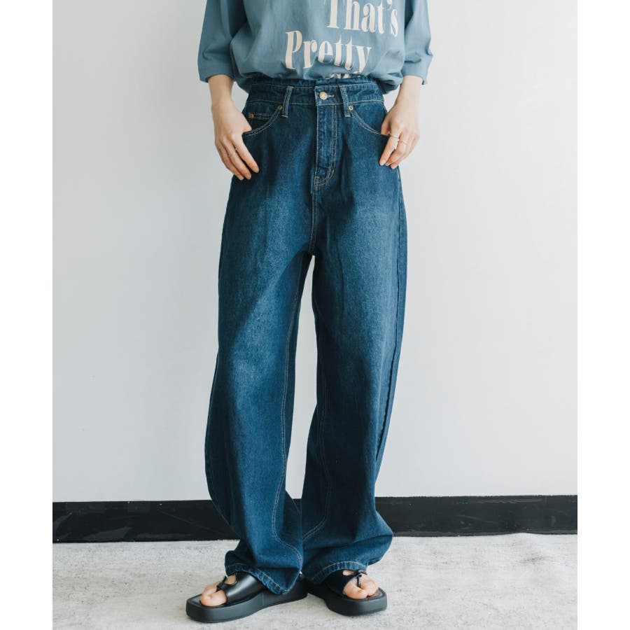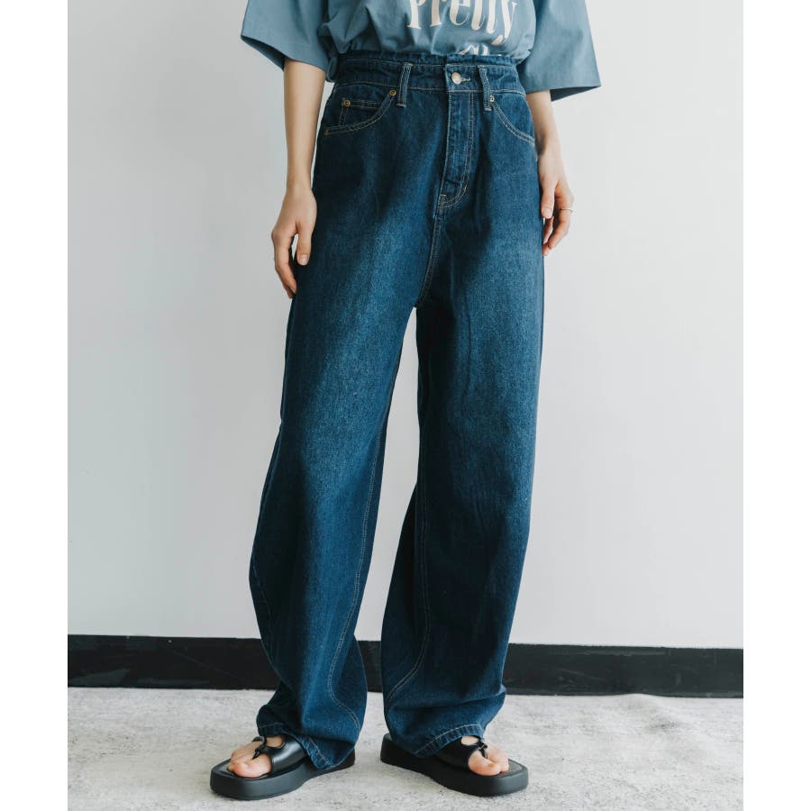 立体的なカーブシルエットで、旬のレッグラインを描くカーブデニムパンツ。