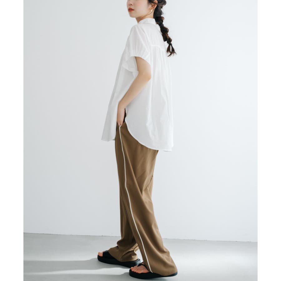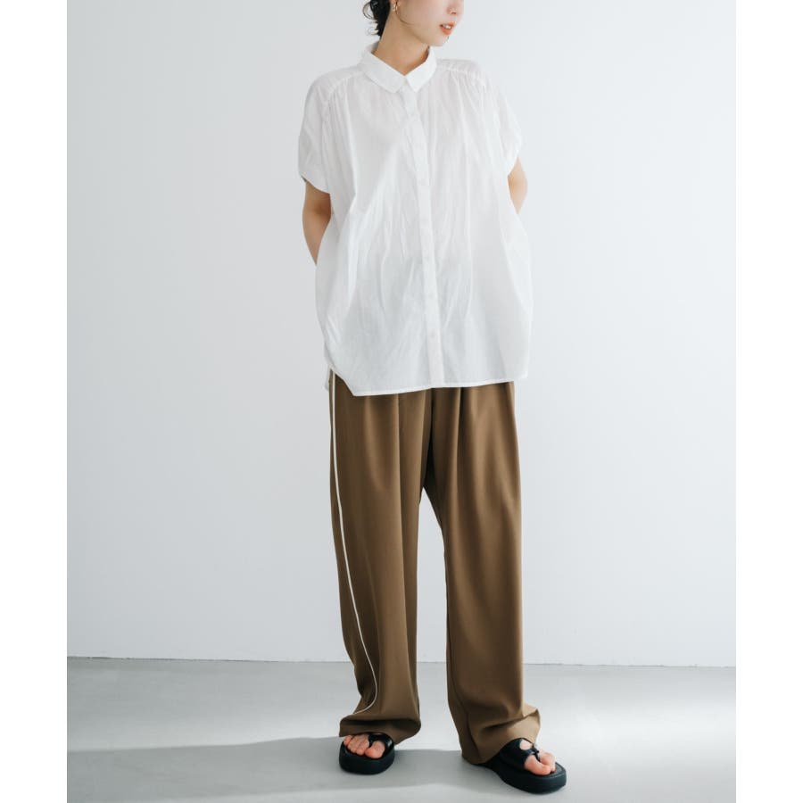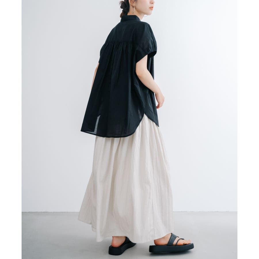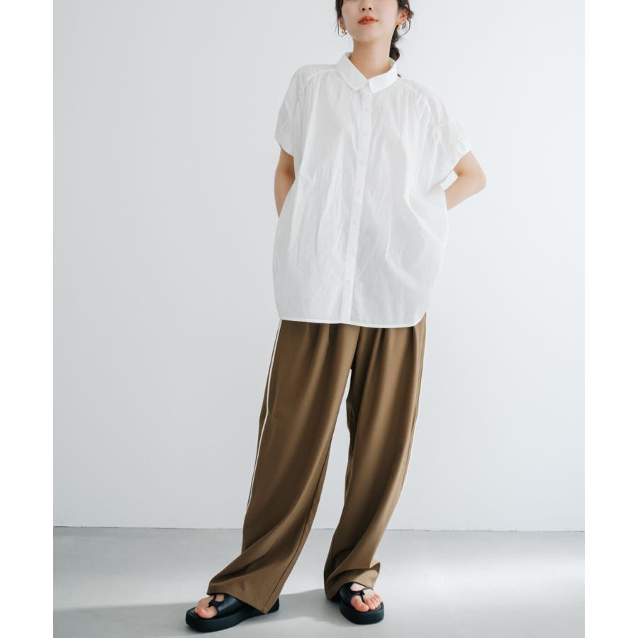 スカートと合わせると柔らかい雰囲気になり、ワイドパンツに合わせるとクールカジュアルな印象に◎