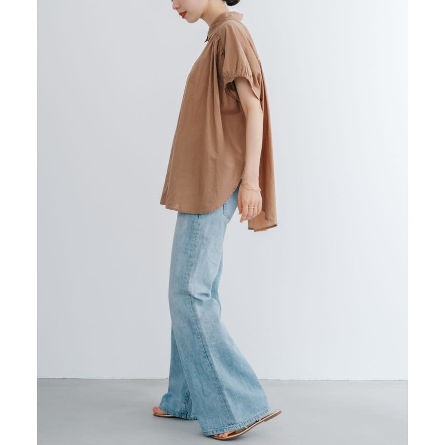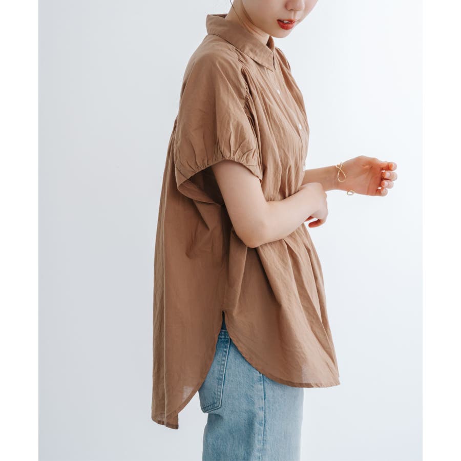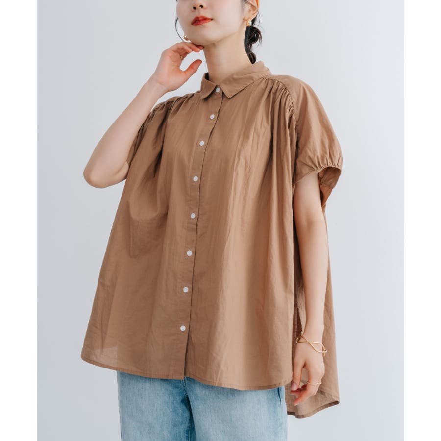 【ブラウン】ギャザーたっぷりのボリューム感が大人可愛いフレンチチュニック!