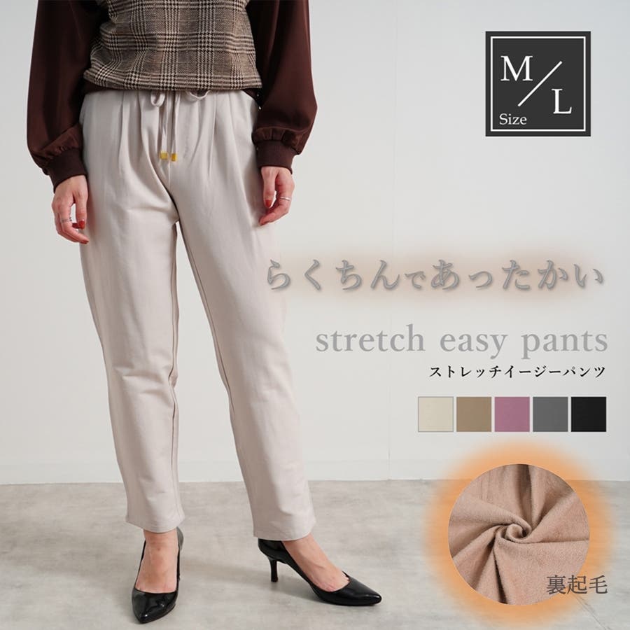【裏起毛スパンツイル ストレッチイージーパンツ】
