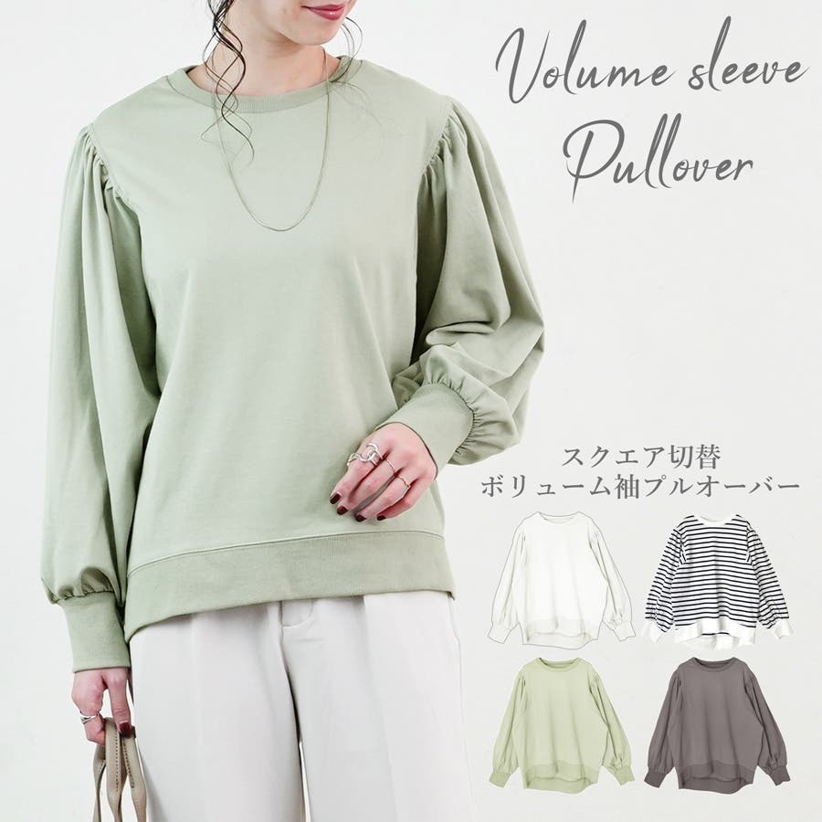 【空紡糸スクエア切替ボリューム袖プルオーバー】