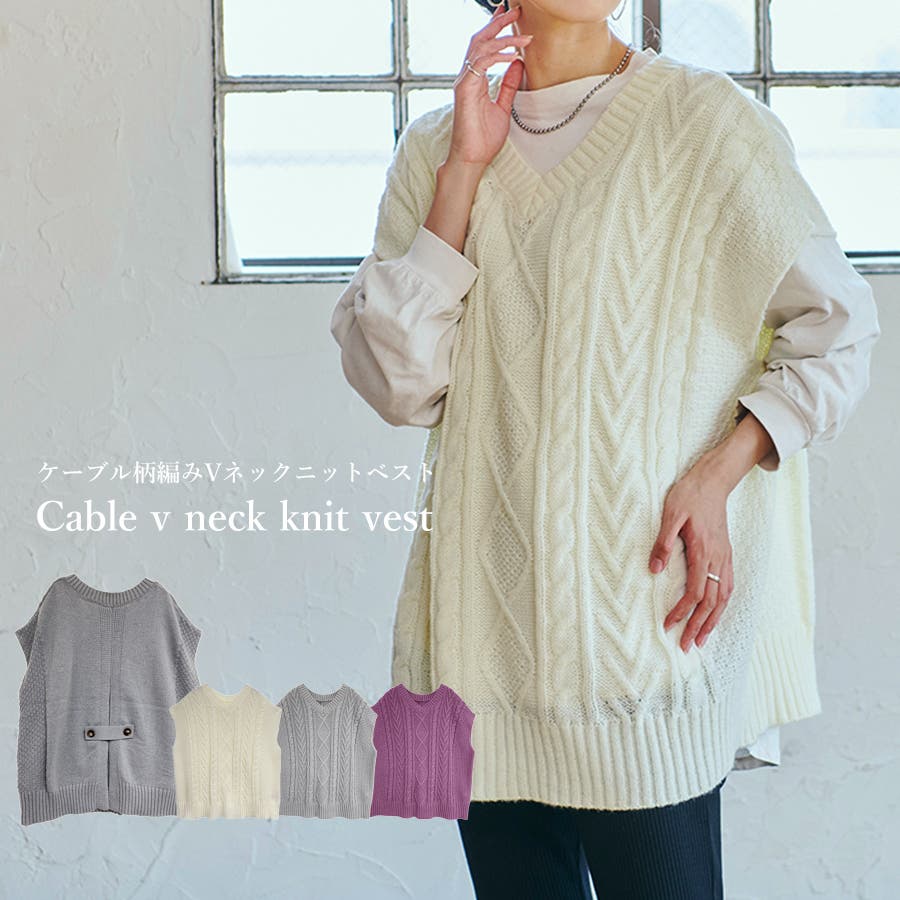 【バックスリット ケーブル柄編みVネックニットベスト】