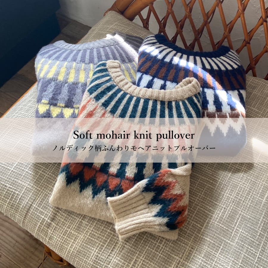 【ノルディック柄 ふんわりモヘアニットプルオーバー】