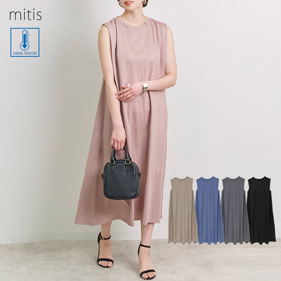 【ワンピース レディース ノースリーブ 春 夏 接触冷感 カノコ タック バックフレア 大人 体型カバー ゆったり 20代 30代 40代 50代】