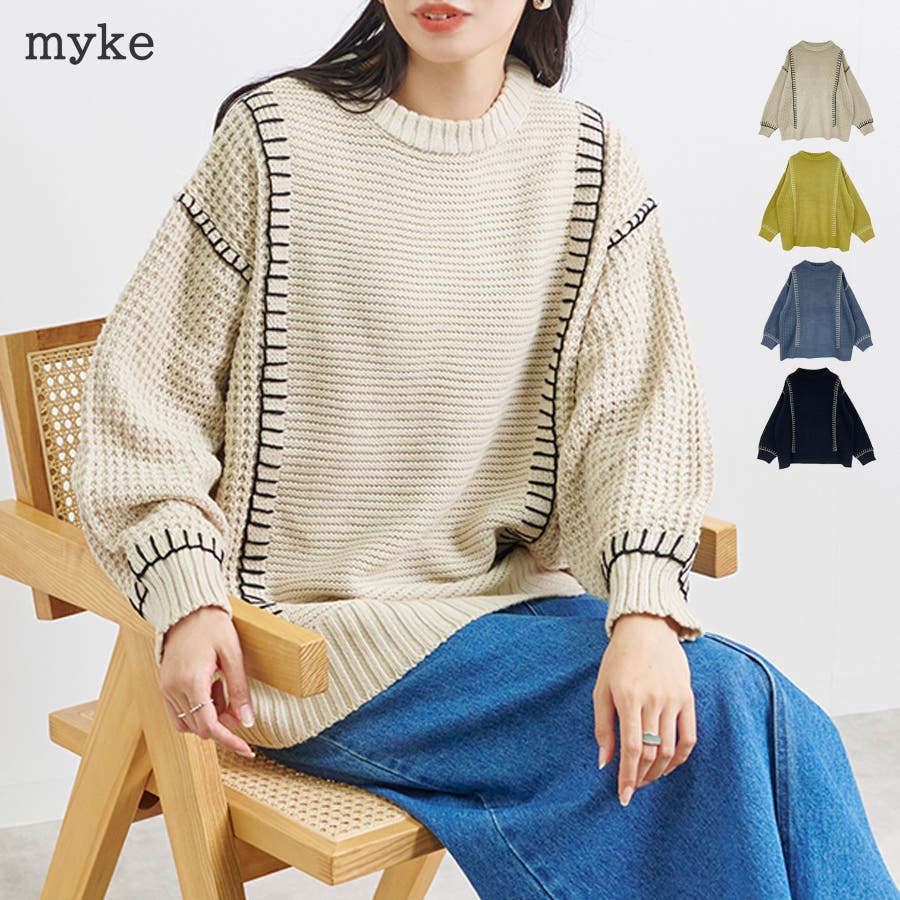 トレンド感たっぷりのブランケットステッチが可愛いニットプルオーバー。