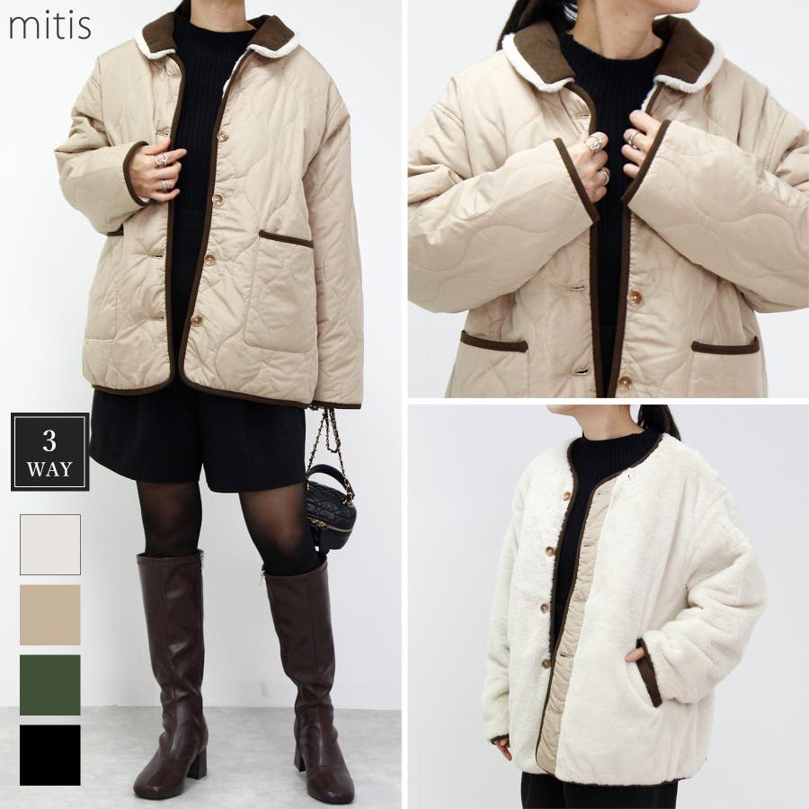 【襟付き3Wayリバーシブルウェーブキルトファーブルゾン】