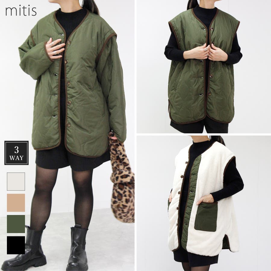 【つけ袖3WAY リバーシブルキルトボアブルゾン】