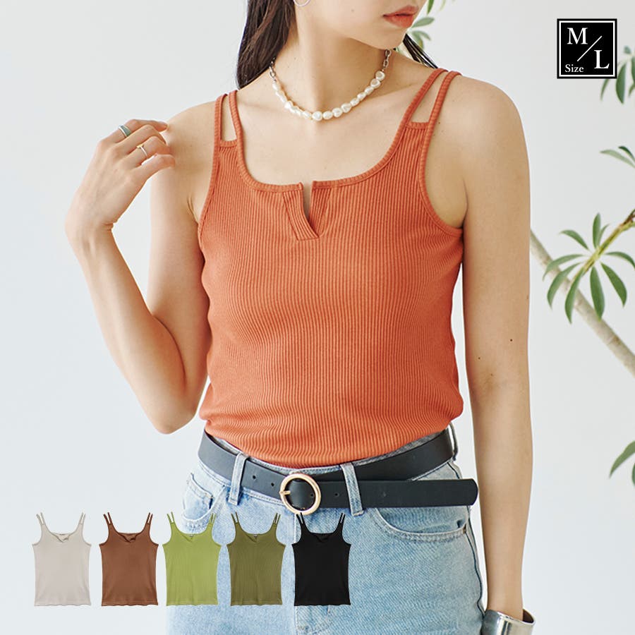 【テレコリブ Vカットデザインダブルストラップキャミソール】